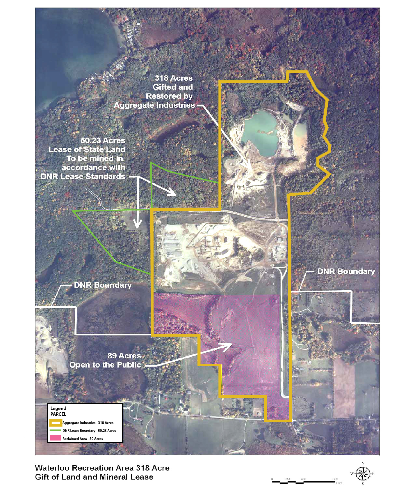 The DNR also entered into a non-metallic mineral lease agreement with AI, allowing AI to mine sand and gravel on 50.23 acres of adjacent state-managed land within the Waterloo Recreation Area. Aggregate Industries will also retain non-metallic mineral rights for a portion of the gifted land and the right to maintain and operate its existing processing facility during the term of the lease.