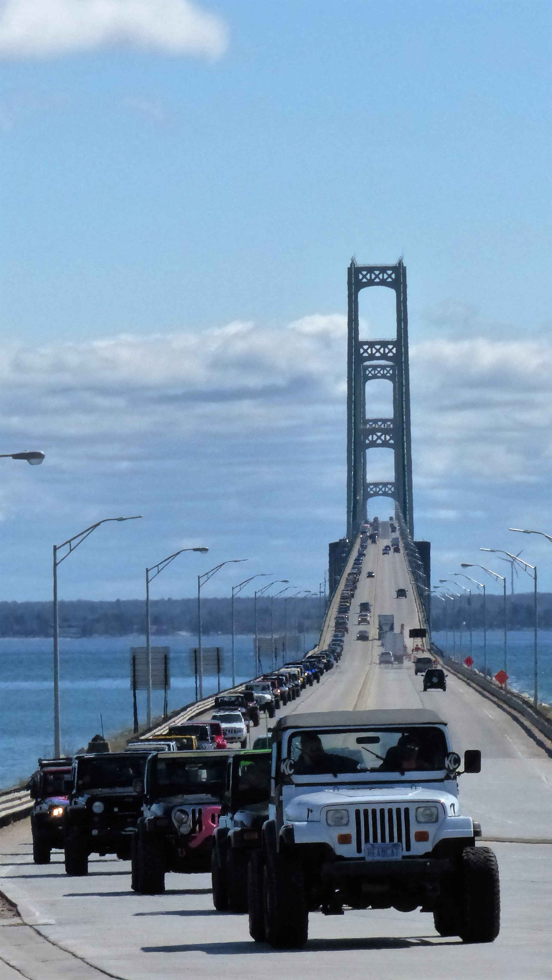 "People come to cross the Mackinac Bridge throughout the year, and spring begins our annual upswing in traffic," said Mackinac Bridge Authority (MBA) Executive Secretary Bob Sweeney. "Special events like Jeep the Mac not only bring a lot of customers to the bridge, but also a lot of publicity for the bridge and the surrounding communities."