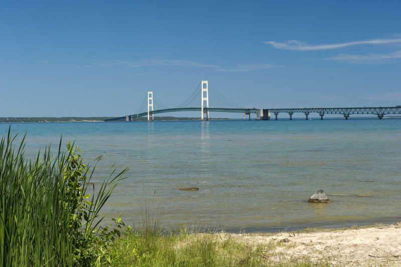 4 – Mackinac Bridge from Mackinaw City – Though at times the Straits of Mackinac are foggy in spring, weather conditions are general providing good views of the bridge this time of year. (MDOT photo)