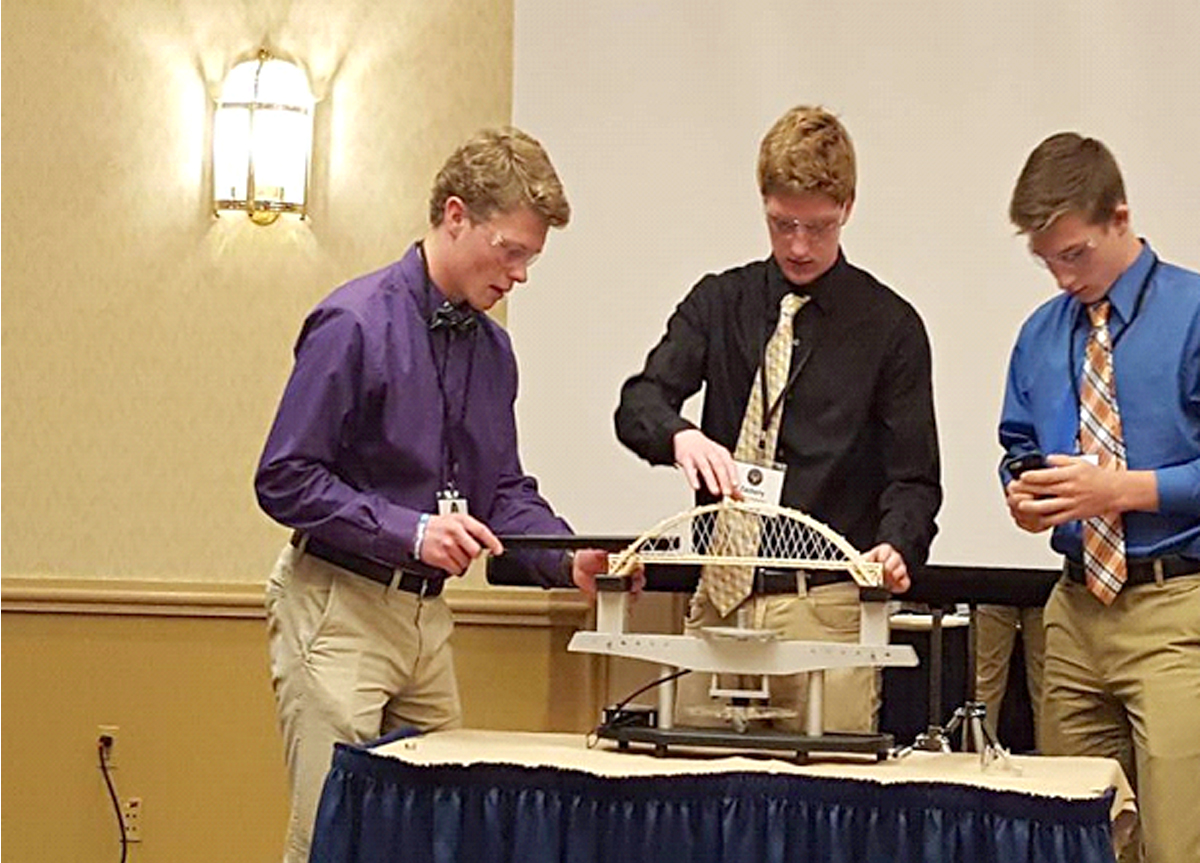The competition's goal is to develop a bridge that will carry as much weight as possible while weighing as little as possible. Students compete in separate age categories: grades 7-8, 9-10, and 11-12. Michigan teams took first place honors in all three age categories and secured seven of the nine top spots.