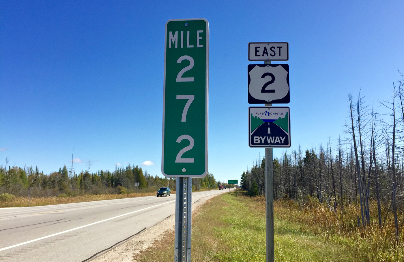 CAPTION: Pure Michigan Byway signs now mark the new US-2
