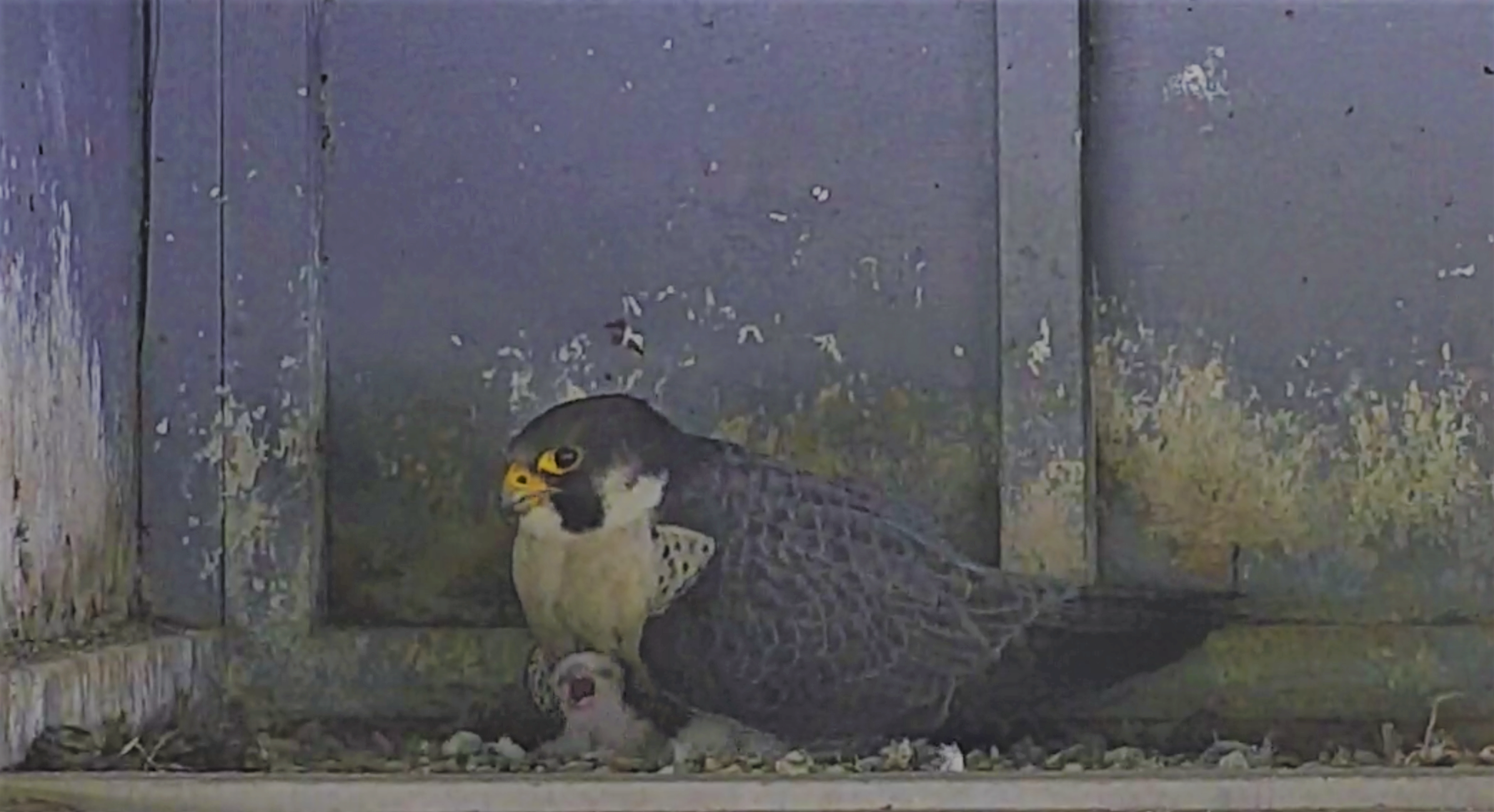 A pair of peregrine falcons recently hatched two chicks in the nest box at the Sault Ste. Marie International Bridge. The image was captured on the new nest camera, now streaming live online. (IBA photo)