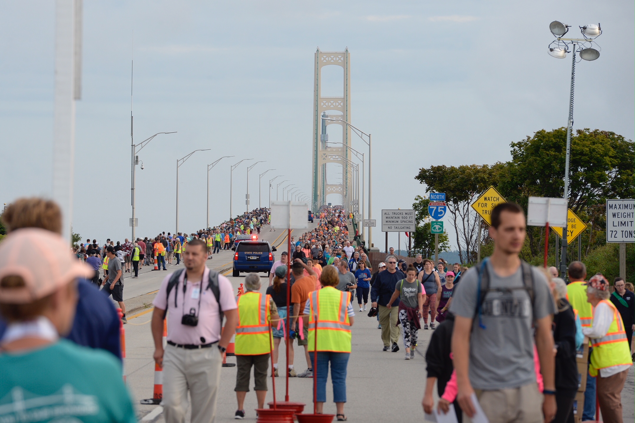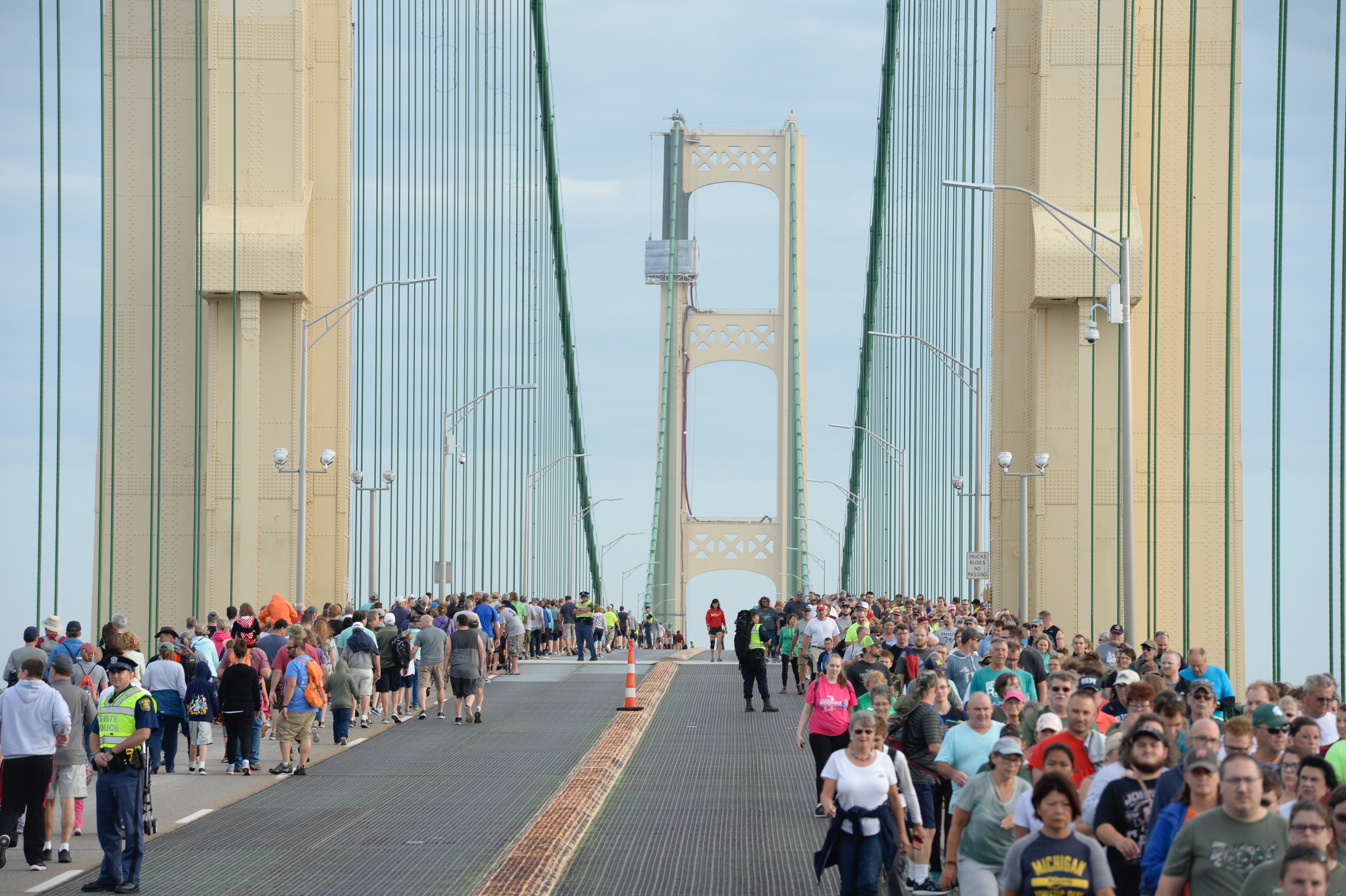 The MBA decided to close the bridge to public traffic during the walk beginning in 2017, based on recommendations from the Michigan State Police and U.S. Department of Homeland Security. Emergency vehicles are still be permitted to cross the bridge during the event, but no public vehicles were allowed until the walk concluded and participants were off the bridge.