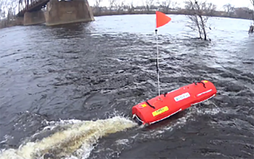 Since it lurks underwater, scour can be difficult to detect. Ideally, inspectors look for signs of scour during high-water flow events as it's happening. However, turbulence and fast-moving debris in the water could endanger workers using traditional tools like piloted boats and under-bridge inspection equipment. Also, these methods can't be used in locations with limited vertical clearance, such as beneath a bridge when water levels are high, and they take time to deploy.