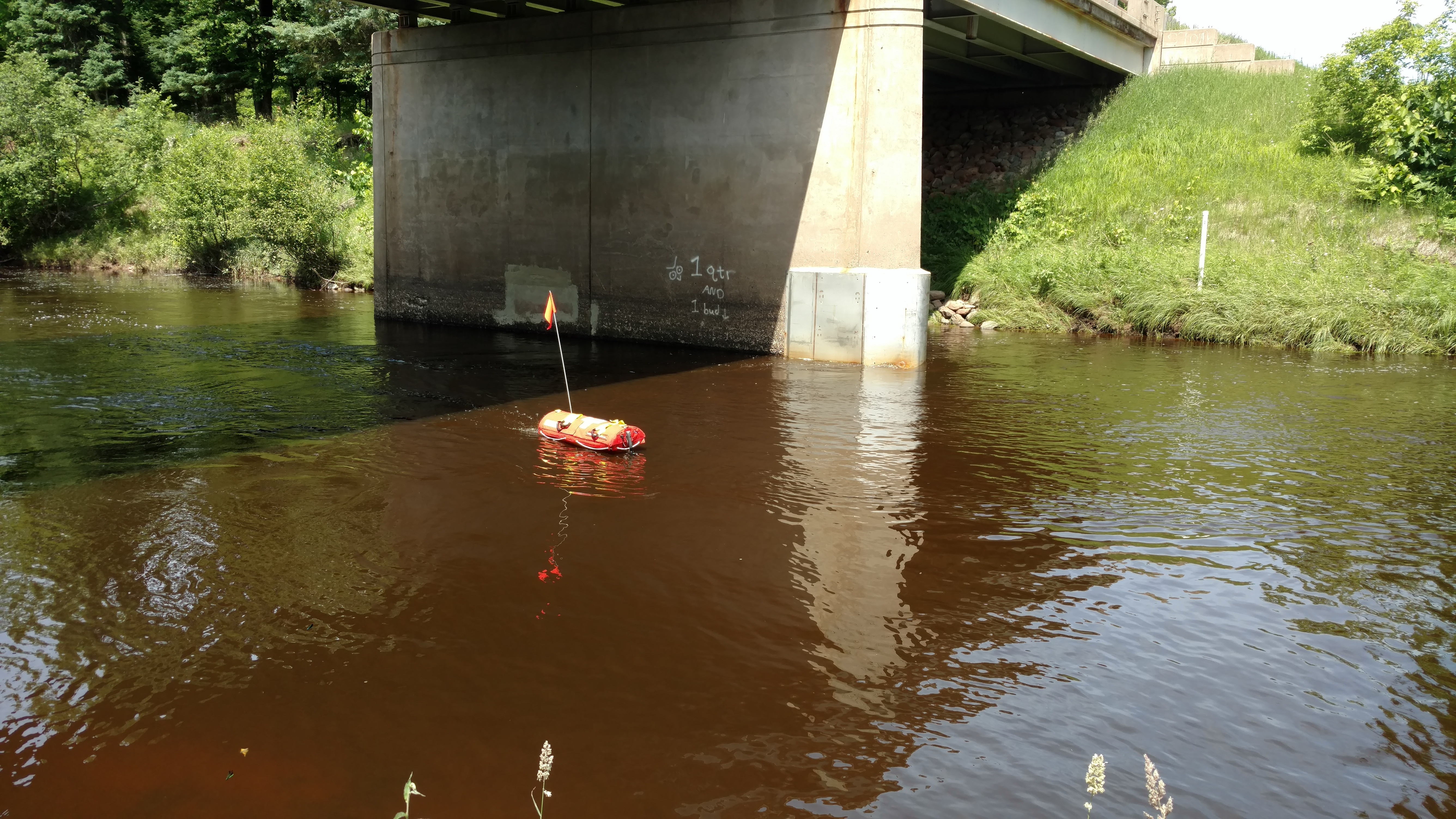 MDOT routinely inspects bridges for scour around abutments and piers. Typically, this involves inspectors launching a boat and probing the channel bottom with metal rods, weighted tape measures or sonar devices. During high-flow events, this can be a dangerous task.