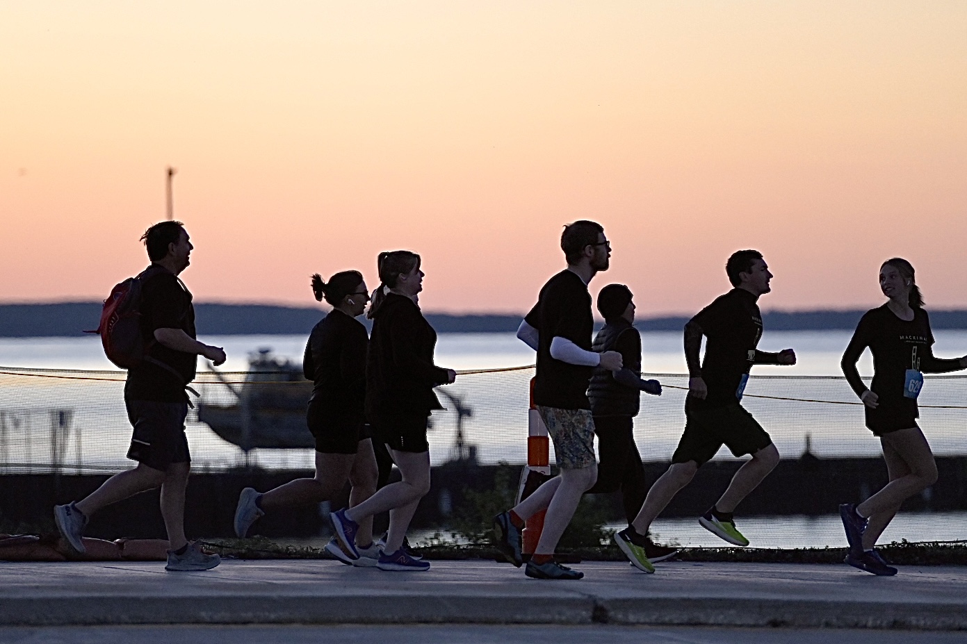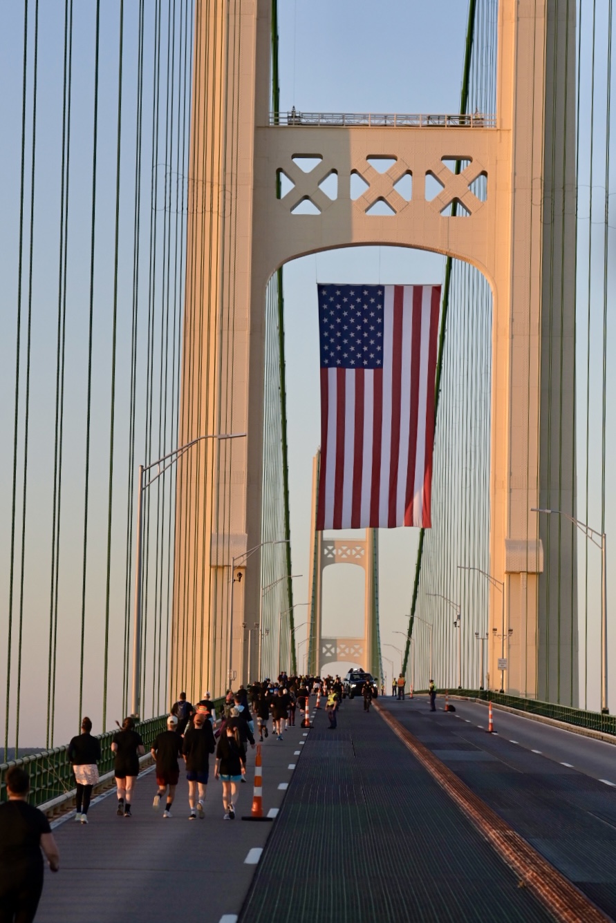 Mackinac Bridge Run participants - MDOT photo.jpg: Participants in the Labor Day Mackinac Bridge Run at sunrise.
