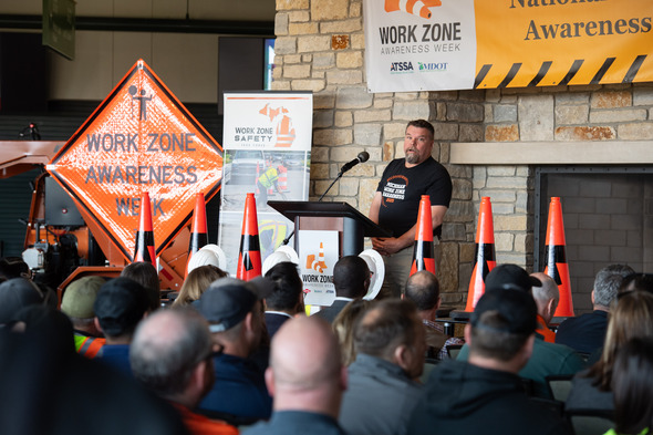 MIOSHA Construction Safety and Health Division Director Dan Maki spoke at the event and encouraged both driver responsibility and workplace compliance.