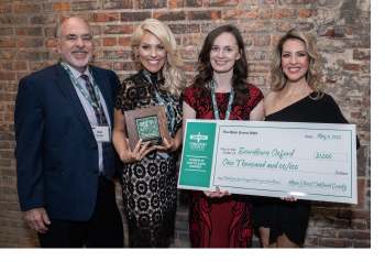 Happy Oxford DDA staff holding an oversized check and award plaque.