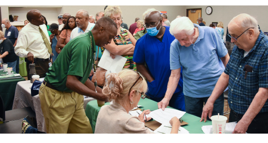 Veterans being served at a veterans resource fair
