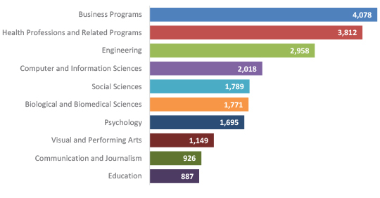 Bar Graph Showing Most Awarded Fields for Bachelor’s Degrees in Region (2021)