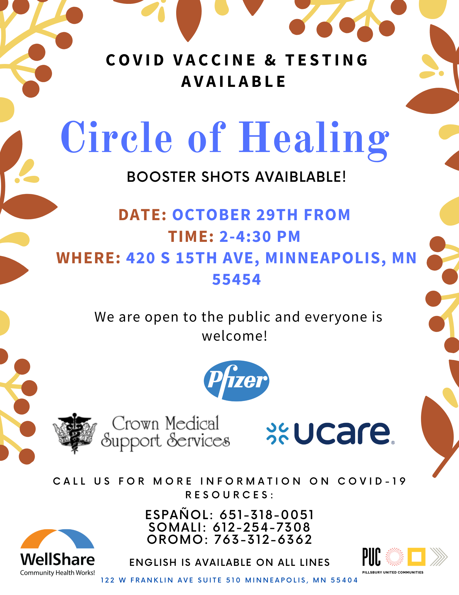 - Translated messages in Amharic, Arabic, Chinese, Dakota, French, Hindi, Hmong, Karen, Ojibwe, Oromo, Russian, Somali, Spanish, Swahili, Tibetan, Vietnamese