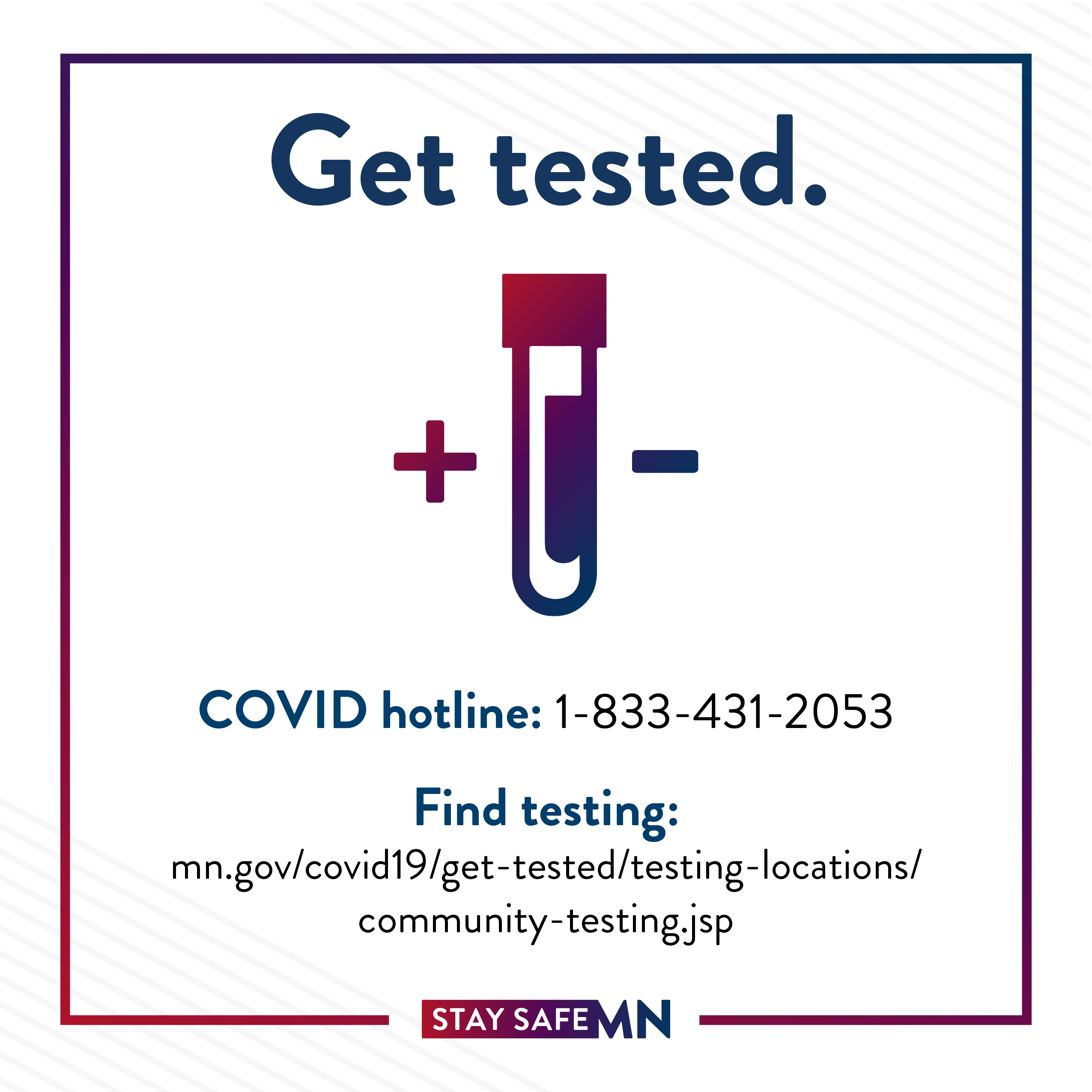 Walk in or schedule an appointment for a test at one of the state's free testing sites across Minnesota.