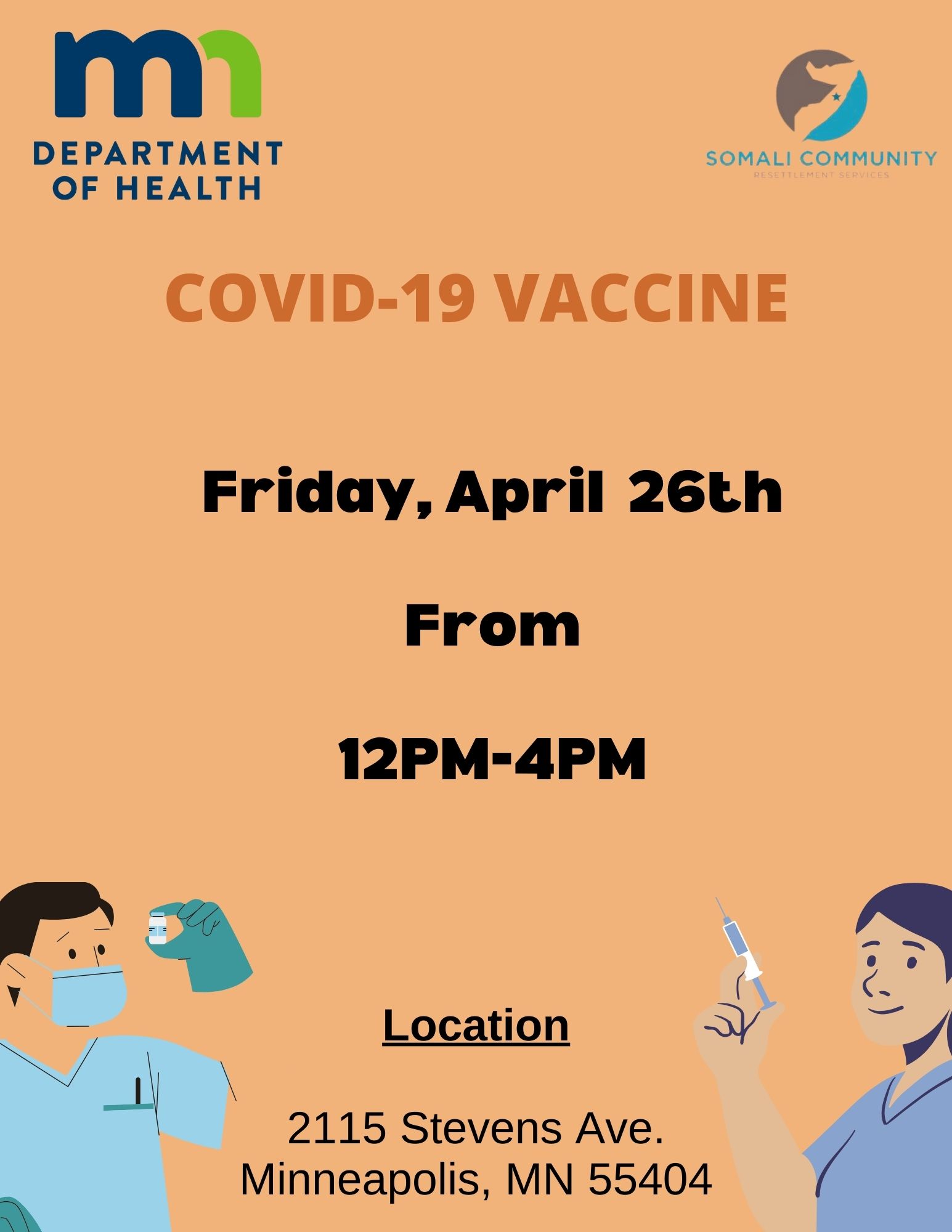 The Minnesota Department of Health (MDH) works in partnership with communities to provide safe and free on-site COVID-19 vaccines.