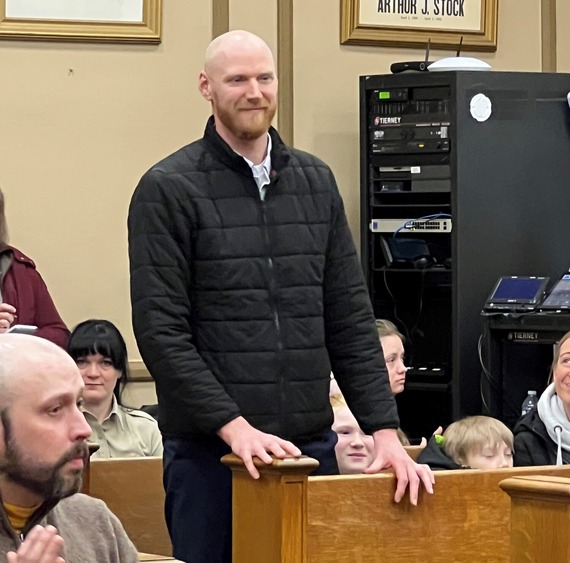 Undersheriff Jason Akerson leads a round of applause for (L-R): Lindsey Evraets, Louis Meglen, and Lucas Martin Crawford-Nichols who saved a man's life during a water emergency off Park Point.
