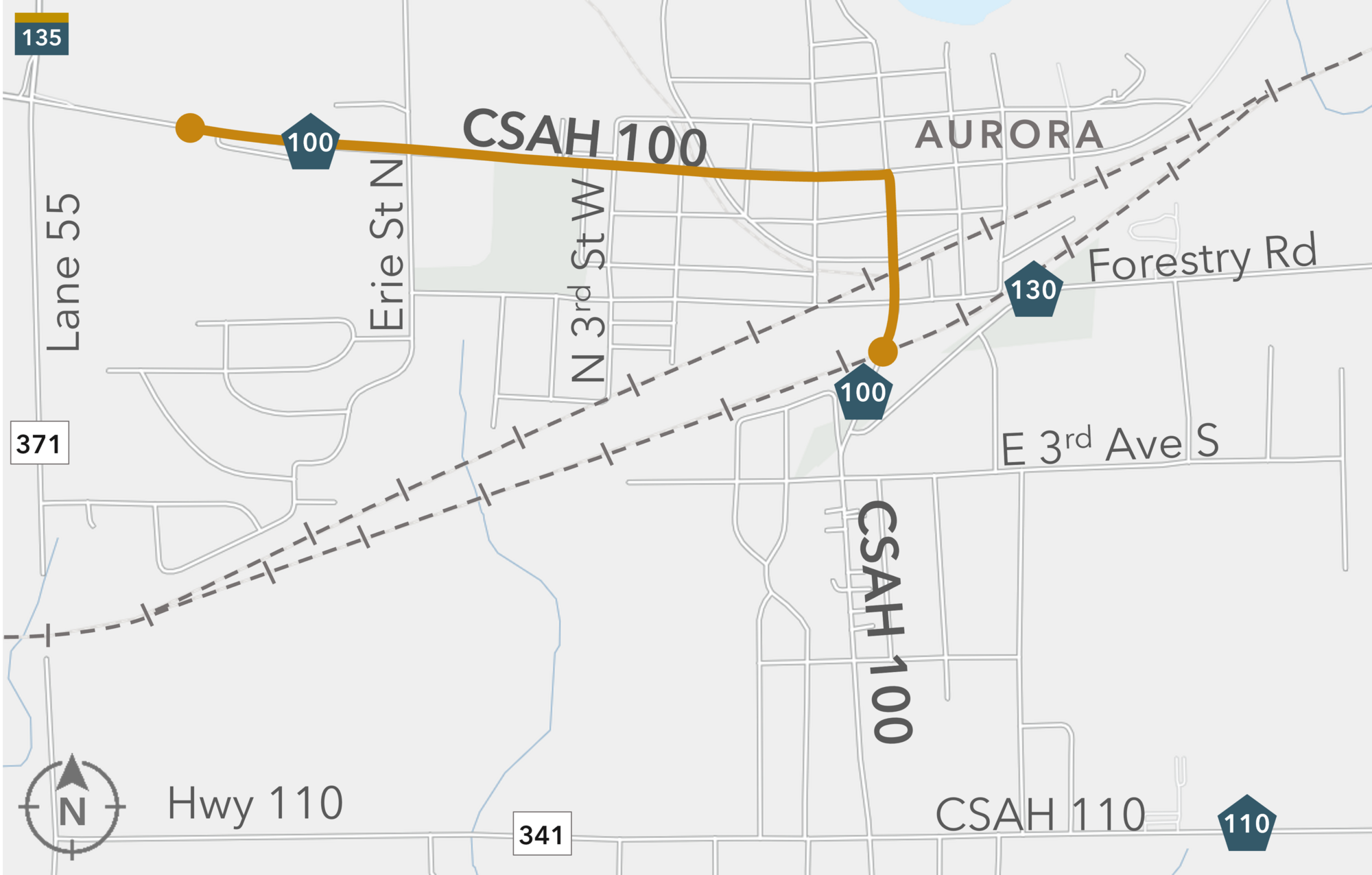 St. Louis County Public Works to present final design plans for County State Aid Highway (CSAH) 100 in Aurora