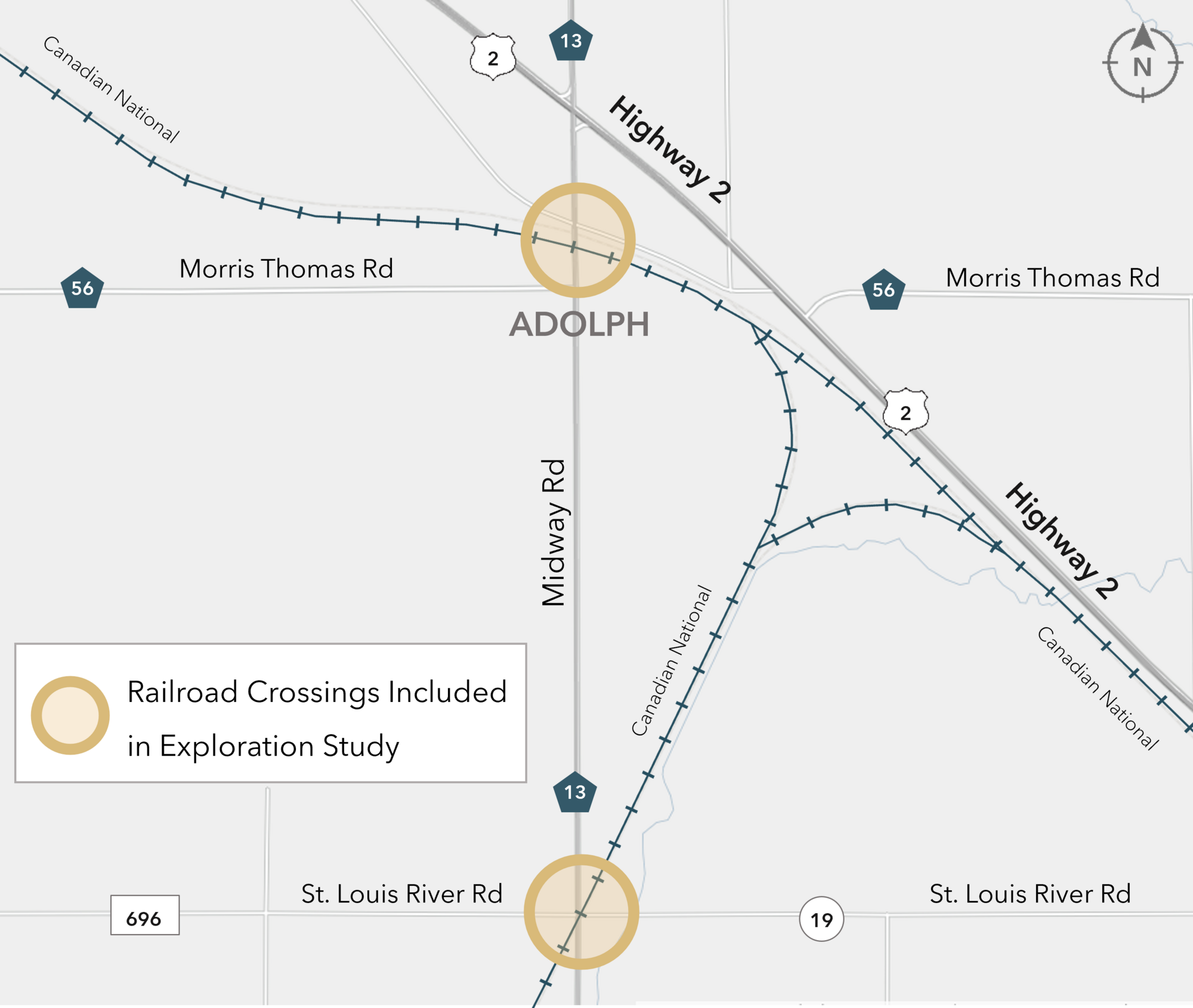 Through the Midway Road Railroad Crossings Elimination Planning Project, engineers will develop various alternatives through a public engagement driven process that will close both railroad crossings. The planning project will develop a final recommended layout and cost estimate and finalize an environmental document approved by the Federal Railroad Administration and Federal Highway Administration. St. Louis County would then work to request capital funds to construct the project. A timeline for project construction has not been determined.