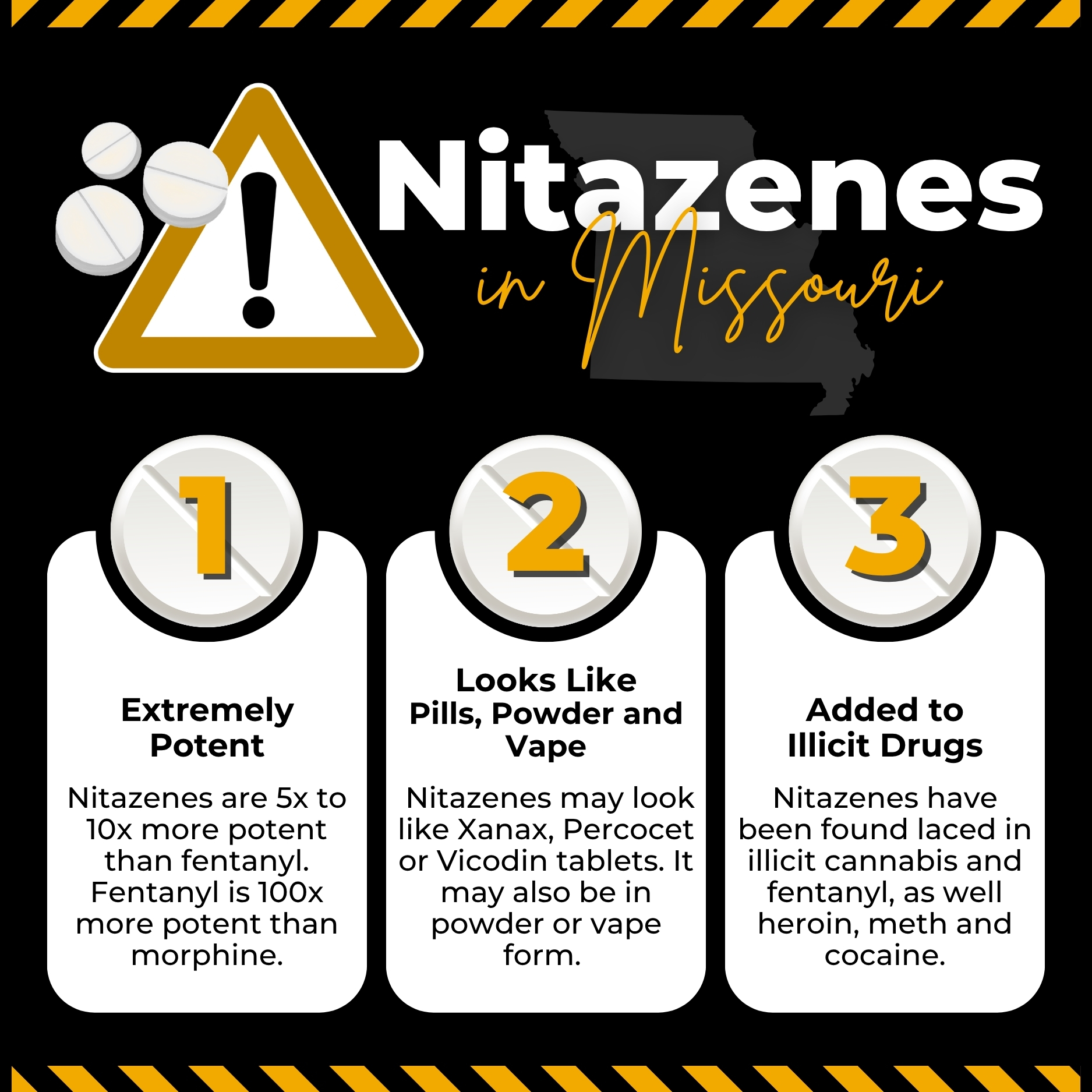 DHSS will issue a health advisory and news release today (March 24, 2026) regarding the presence of nitazenes, a class of highly potent opioids, being detected in Missouri.
