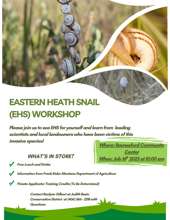 16 - Eastern Heath Snail Workshop (Raynesford, MT) For more information call (406) 566-2218