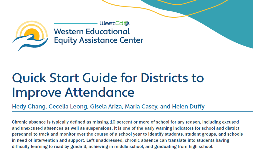 Download a new quick start guide. Attendance Works collaborated with the Western Educational Equity Assistance Center on a resource with six actionable steps that district, tribal, state and other leaders can take to improve student attendance, reduce chronic absence and close gaps in access to education. |