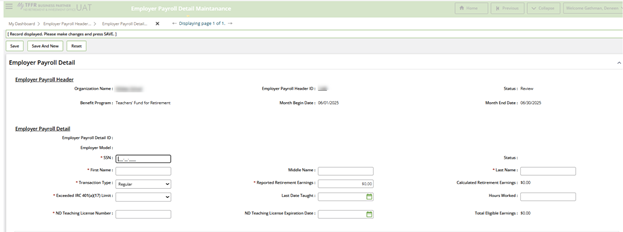 Example 2: If the member terminated in November 2024 and the business partner submitted last contribution in the old system but did not report the last day taught or hours worked. As part of the June report, submit Last Day Taught and Hours Worked with salary and contributions reported as zero.