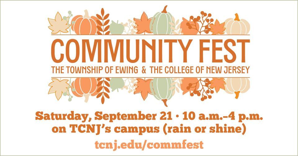 Ewing Township and The College of New Jersey proudly invite you to gather on TCNJ’s campus for Community Fest, a favorite fall event! Enjoy a day filled with local vendors, crafters, civic organizations, refreshments, a bike ride, family amusements, and — of course — friends and neighbors.