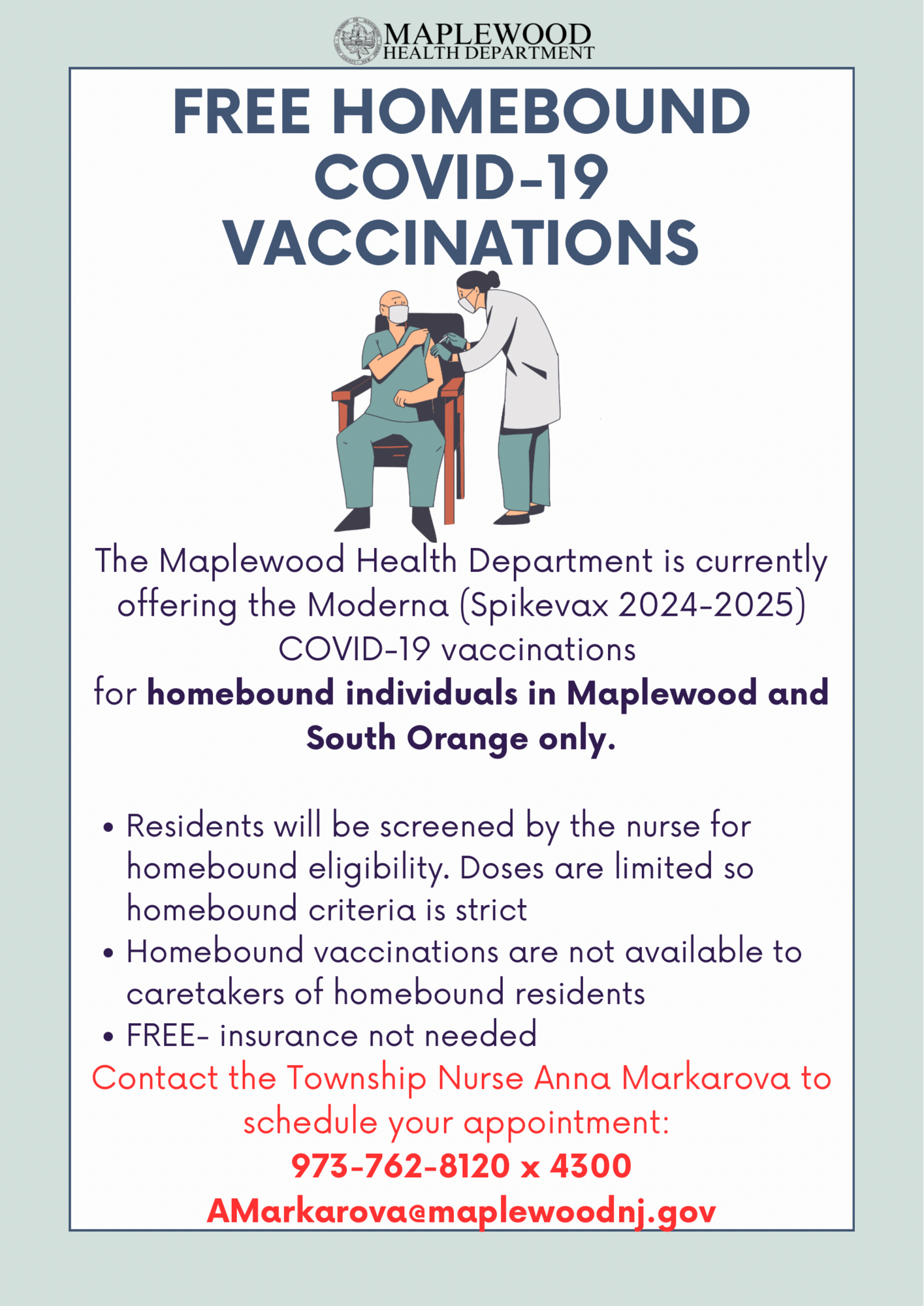 Check out our December Board of Health report for lots of useful info on free COVID tests, free COVID vaccinations for the homebound, online assistance for social services, free flu vaccination clinics (including high dose flu vaccine for seniors), how to access free children’s vaccinations through Essex County and more.