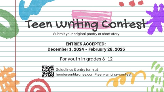 Unlock your creative side by entering the 16th Annual Teen Writing Contest at Henderson Libraries! With nearly three months remaining to participate in this always anticipated competition, there is no reason not to submit an entry. Put your thinking cap on and develop an original short story or piece of poetry, then check the complete list of rules before submitting it by February 28, 2025.