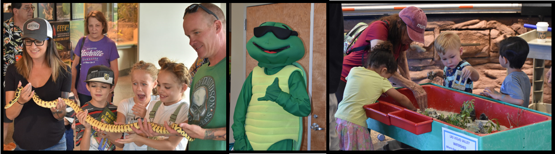 Discovery Day is open to participants of all ages. Highlights include encounters with live desert creatures, crafts and activities, and a full range of interpretive and interactive exhibits. Mascots Tommy the Turtle and Mojave Max will share in the fun.