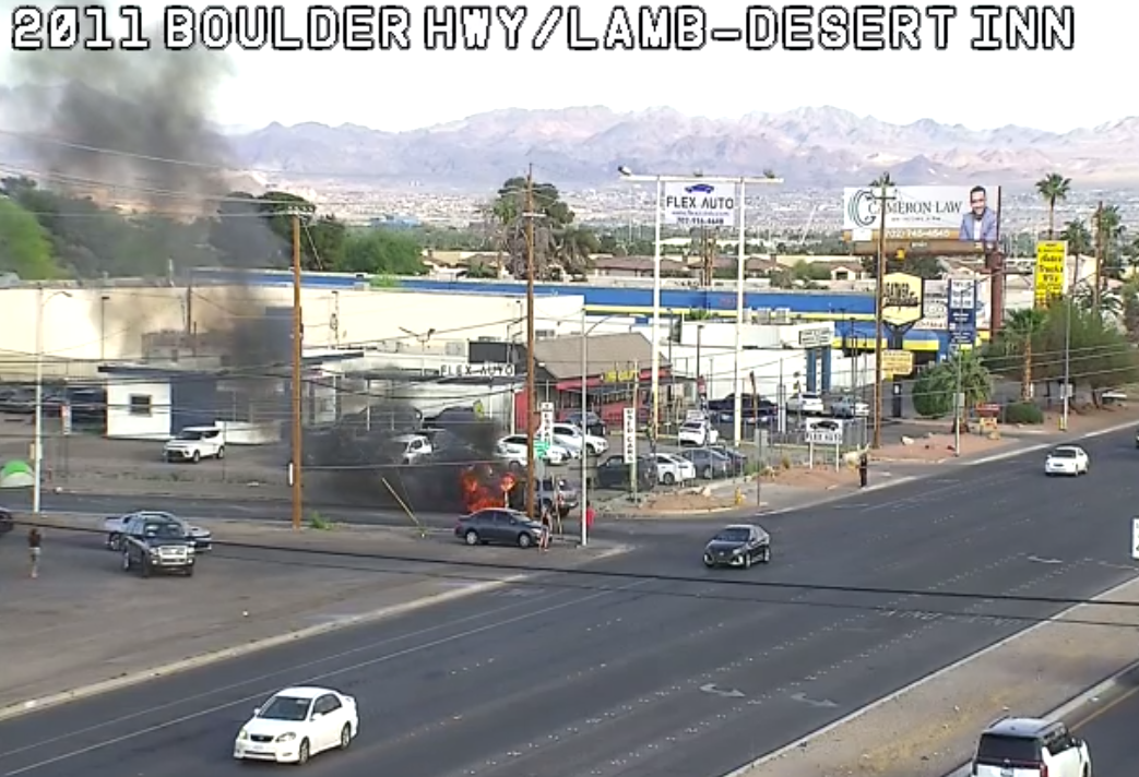 RTC FAST Freeway Traffic Alert RTC Southern Nevada sent this bulletin at 03/21/2026 05:39 PM PDT 5:38 PM, Mar 21 2026 Vehicle on fire on EB Mayorga St at Boulder Hwy. Right lane blocked. attachment_0.png