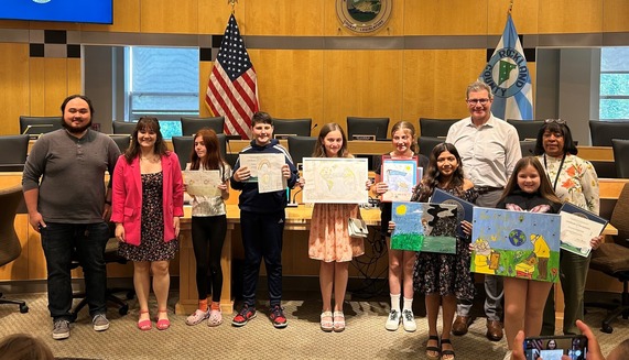 Six fifth grade students from schools around Rockland County were honored for their submissions about ways people can take care of the environment at the annual Eleanor Burlingham Earth Day Creative Arts Contest. Students were presented with an Award of Excellence from the County Executive and a pin and certificate from the Environmental Management Council that organizes the contest.