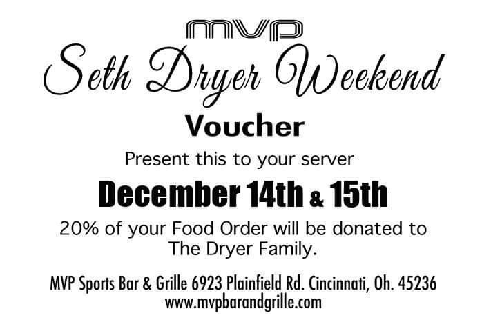 Finally, this weekend, MVP Sports Bar & Grille will donate 20 percent of food sales to help support the Dryer family when presented with the attached coupon.