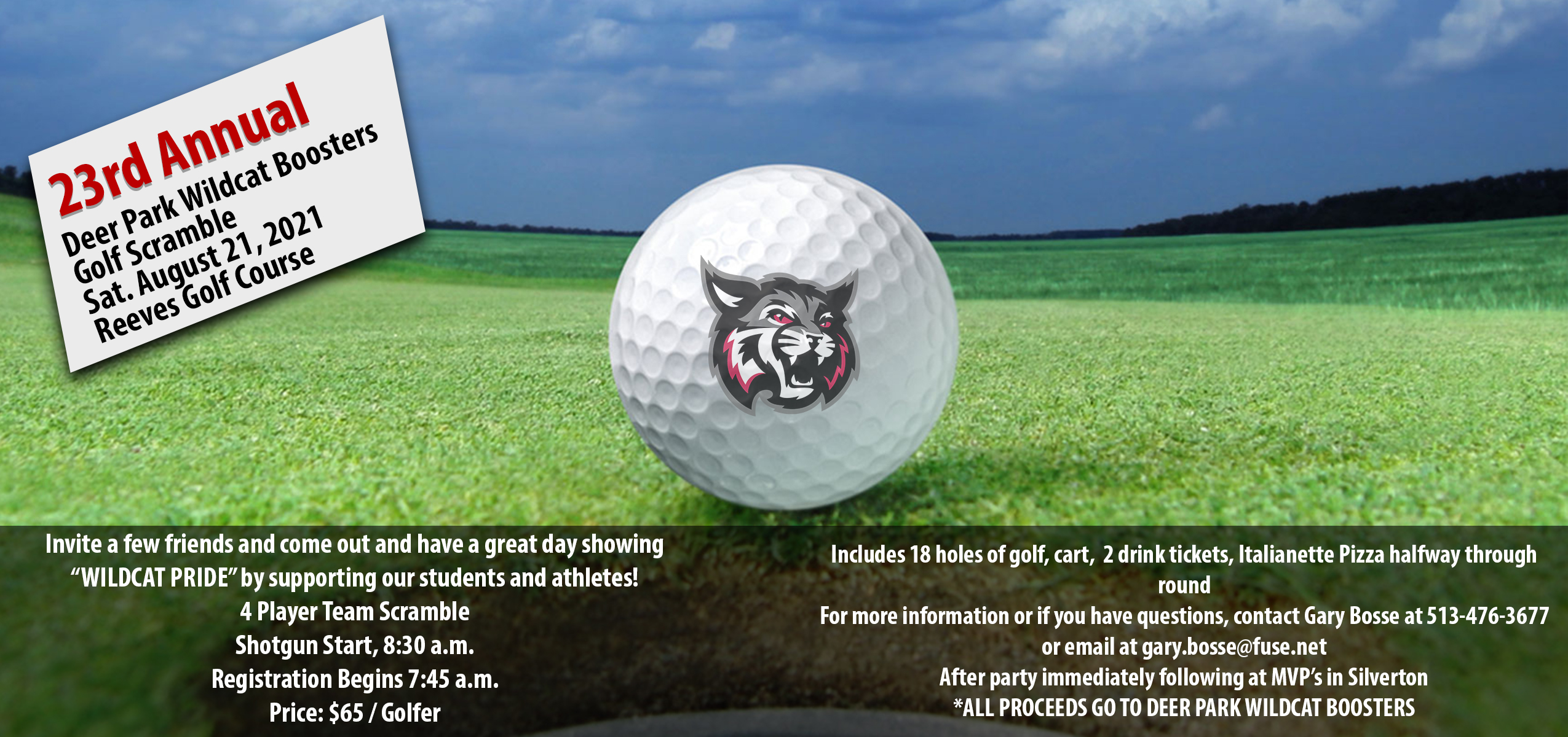 It’s time to register for the 23rd Annual Deer Park Wildcat Boosters Golf Scramble! We expect everyone to be in top golf shape by Saturday, August 21st!