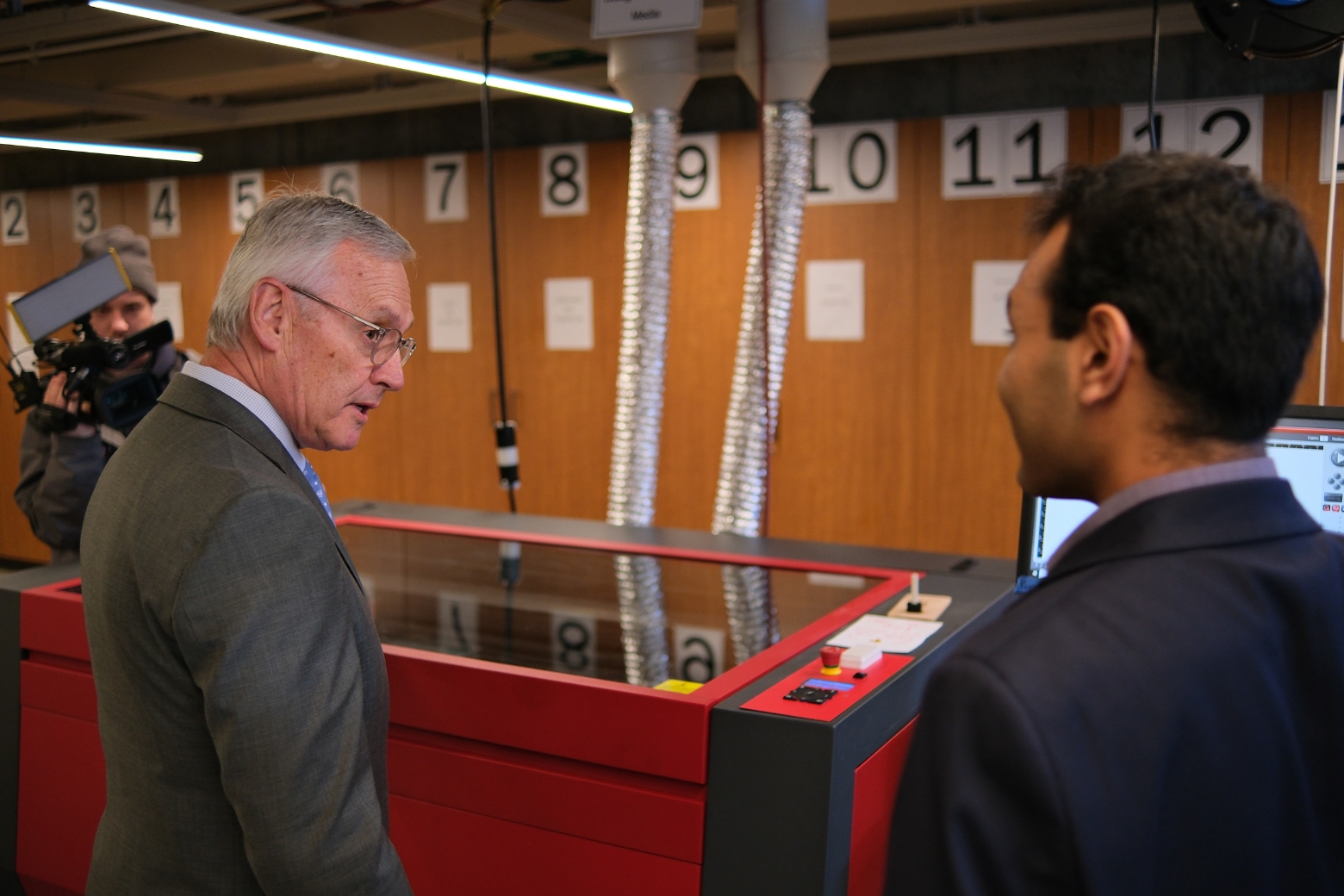 The tour also included a visit to the Dan T. Moore MakerSpace – an innovation and design lab for the CSU community that provides hands-on fabrication equipment for working with metal, wood, and plastic – and where today’s roundtable discussion was held.