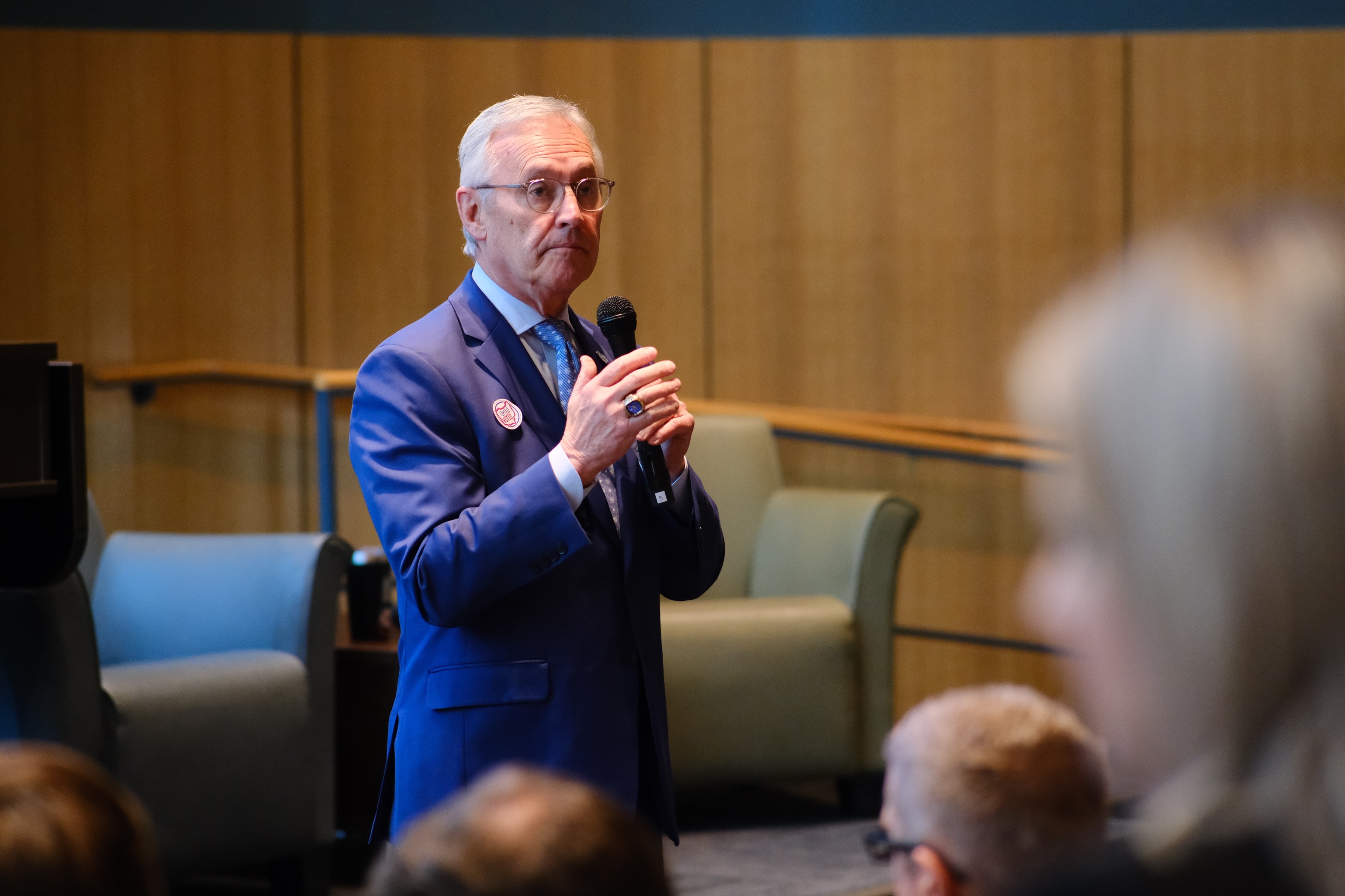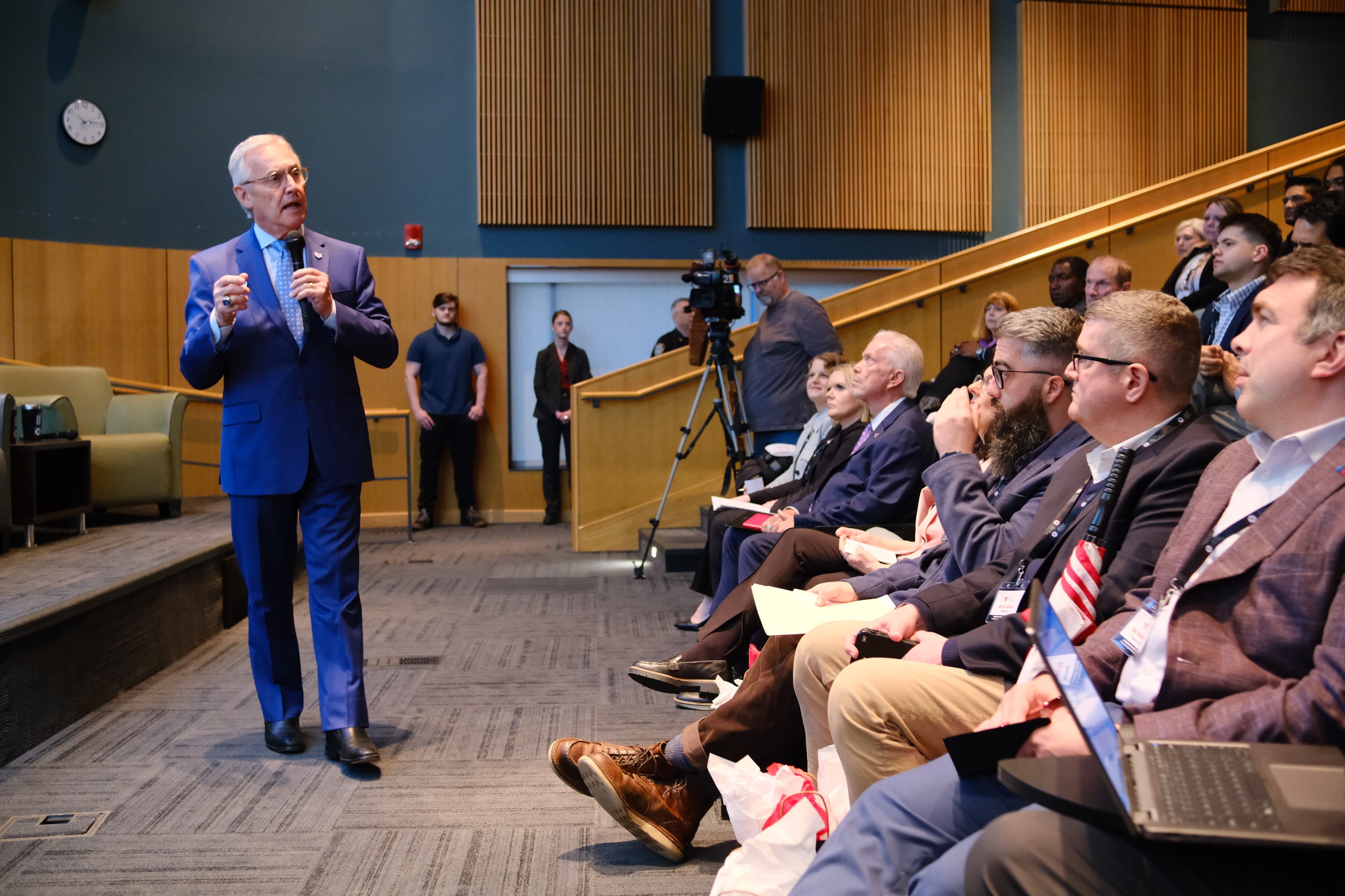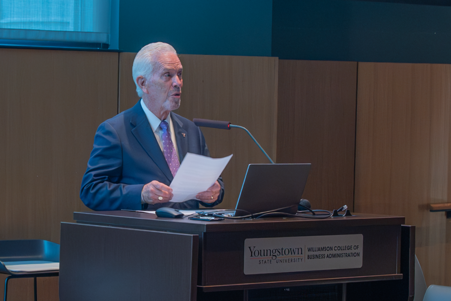 Lt. Governor Jim Tressel addressed a crowd of business and education leaders at Youngstown State University's In-Demand Jobs Week Summit. The event was held at the Williamson College of Business Administration.