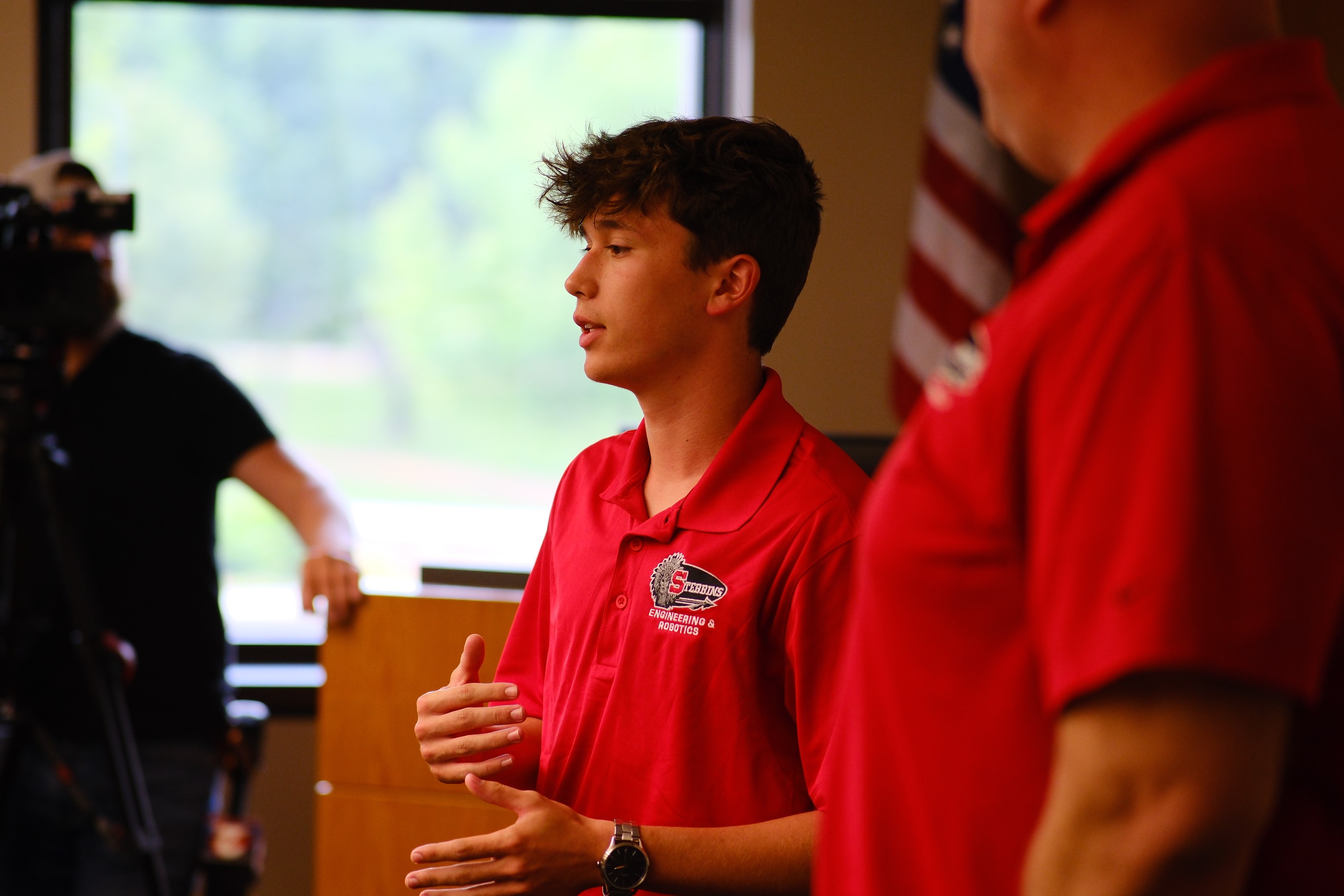 Liam Simpson, a senior at nearby Stebbins High School, spoke during the roundtable to discuss his participation in the College Credit Plus program at Sinclair – noting the credits he has earned will take a year’s worth of tuition off his plate.