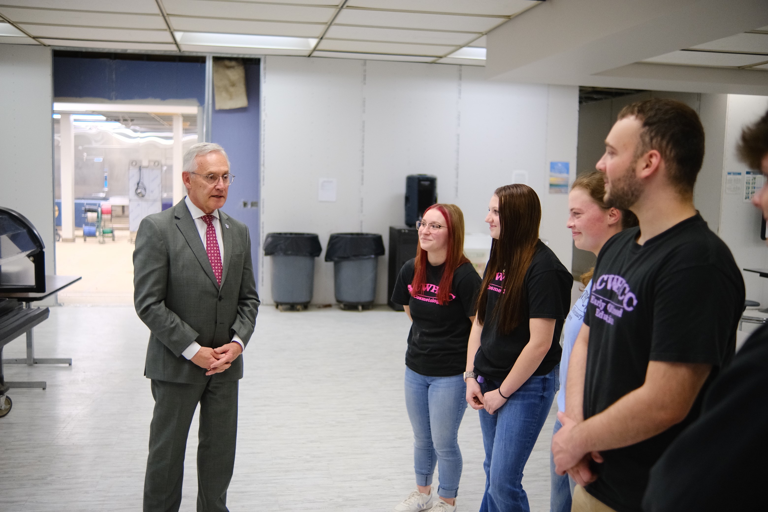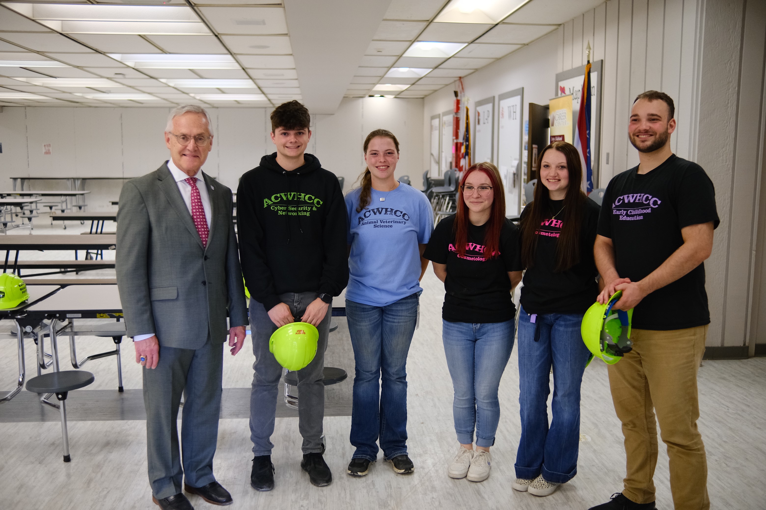 Ohio Lt. Governor Jim Tressel met with several students during his visit Thursday to Ashland County-West Holmes Career Center in Ashland County - part of his Ohio Workforce Playbook tour.