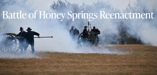 Honey Springs Battlefield offers a biennial multiday event, which begins with an Education Day for school groups on Friday. Activities continue on Saturday and Sunday with self-guided tours through the Union, Confederate, and civilian camps, and a reenactment at 1 p.m. Visitors can experience military drills, demonstrations, and living history programs, and take a walk through Sutler’s Row, which features a number of vendors selling clothes, books, souvenirs, and reproduction nineteenth-century military equipment. Visitors from around the state come to see special presentations and watch the battle unfold.