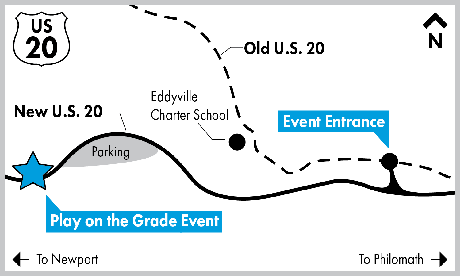 Directions: Turn off of U.S. 20 (Corvallis-Newport Highway) onto the new roadway at the marked entrance. Follow flagger direction to the parking area. There will be a shuttle van available for transport to the event site.