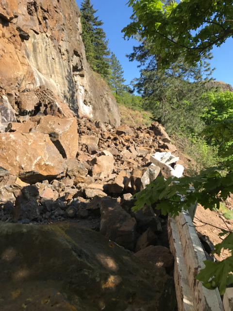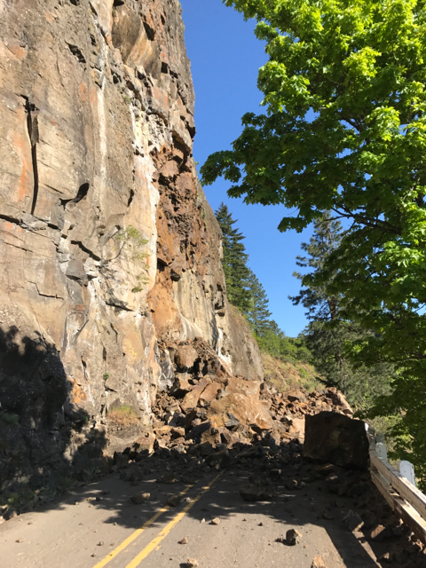 THE DALLES – An extensive rock slide just east of Rowena Point has forced closure of US30, the Historic Columbia River Highway in the immediate area.
