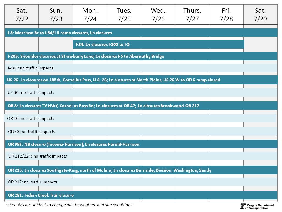 ODOT Region 1 Weekly Construction Update: July 22-29