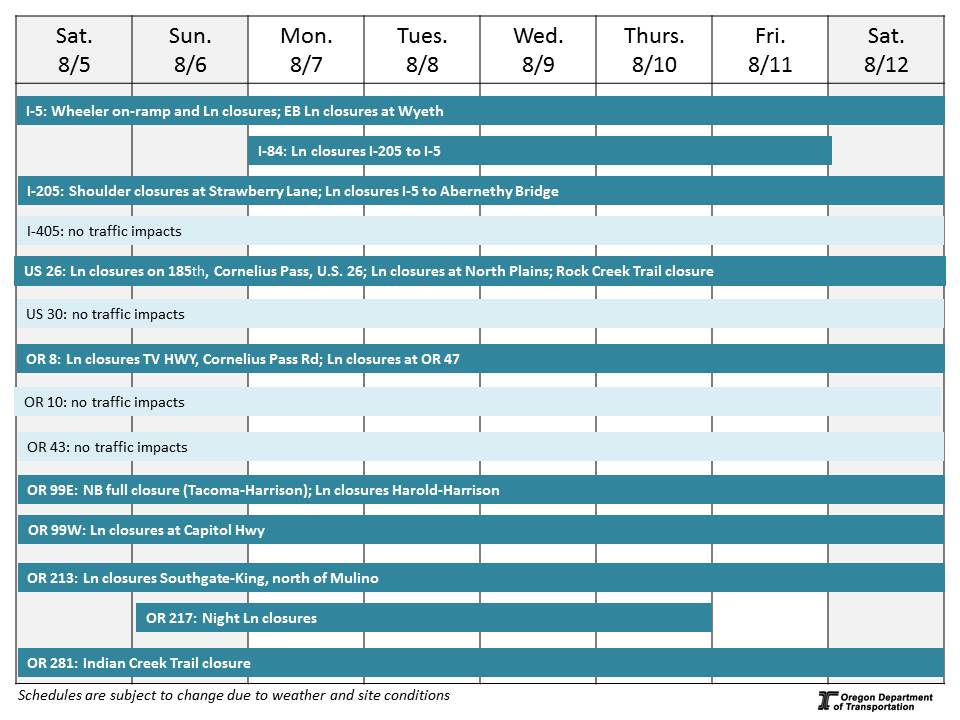 ODOT Region 1 Weekly Construction Update: August 5-12