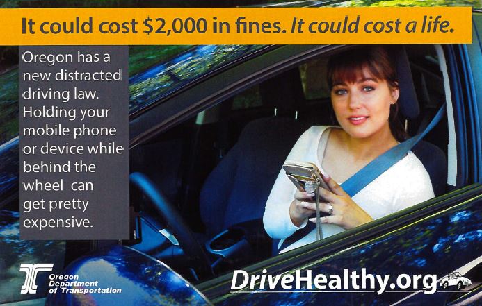 WHY To encourage Oregon drivers to help stop the epidemic of distracted driving; to explain changes to the Oregon distracted driving law