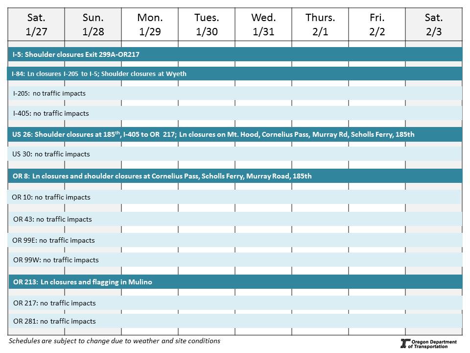 ODOT Region 1 Weekly Construction Update: January 27-Feburary 3