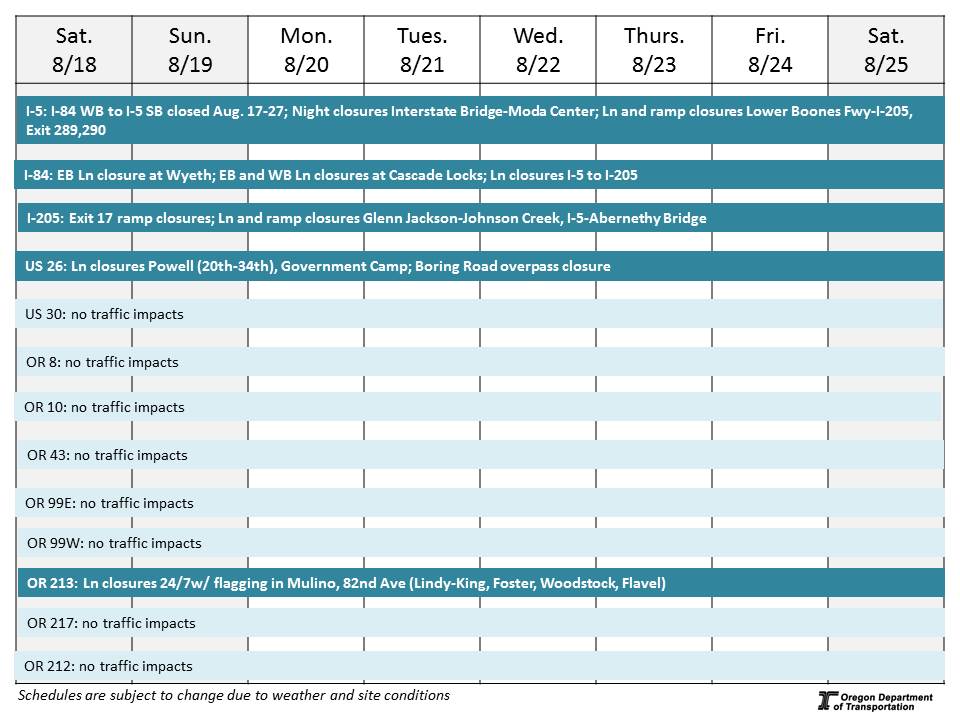 ODOT Region 1 Weekly Construction Update: August 18-25