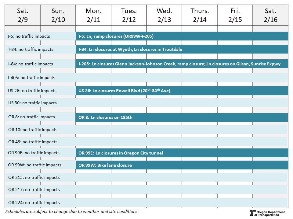 ODOT Region 1 Weekly Construction Update: February 9-16