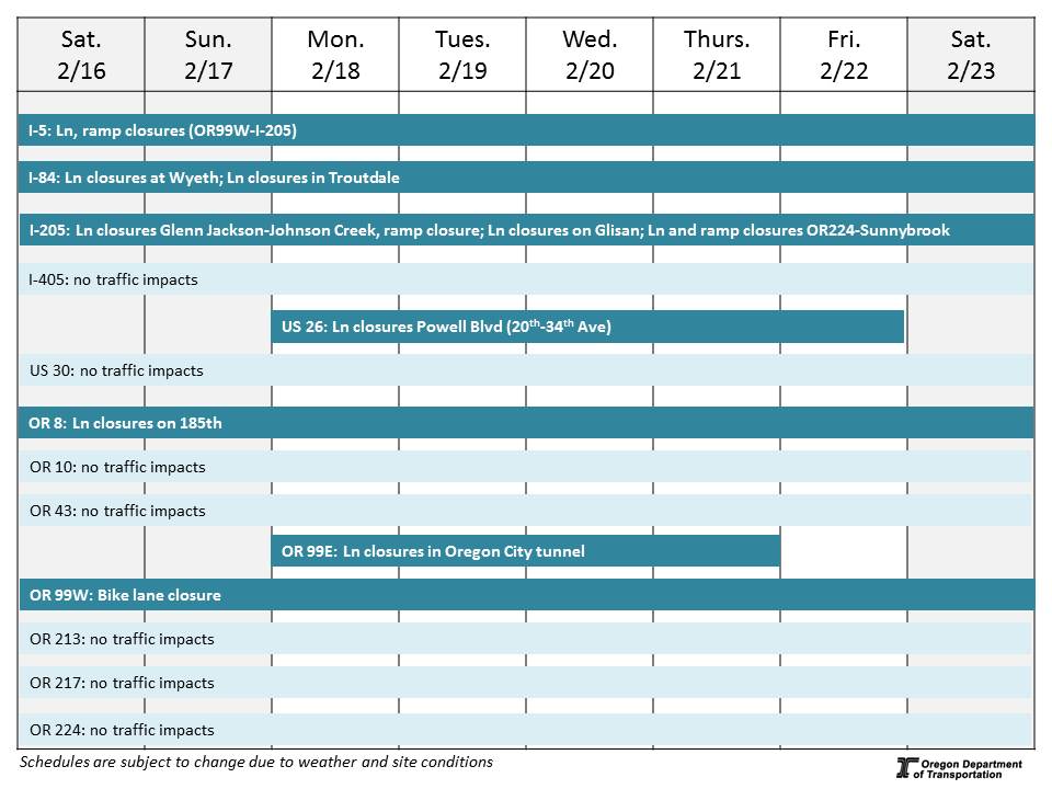ODOT Region 1 Weekly Construction Update: February 16-23