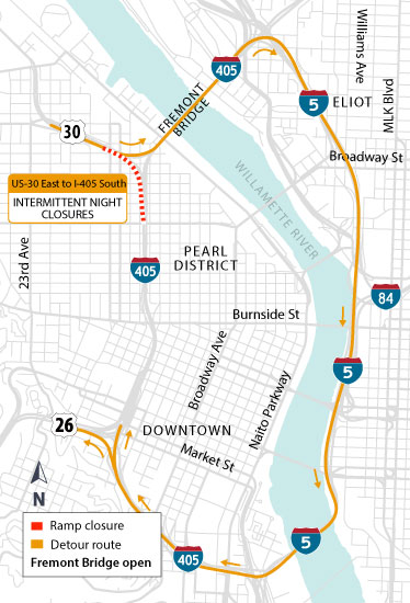 All closures are subject to change and weather dependent. Please visit www.i405ramps.org for the current closure information during construction or visit TripCheck.com for 24/7 traffic impacts in the Portland metro region.