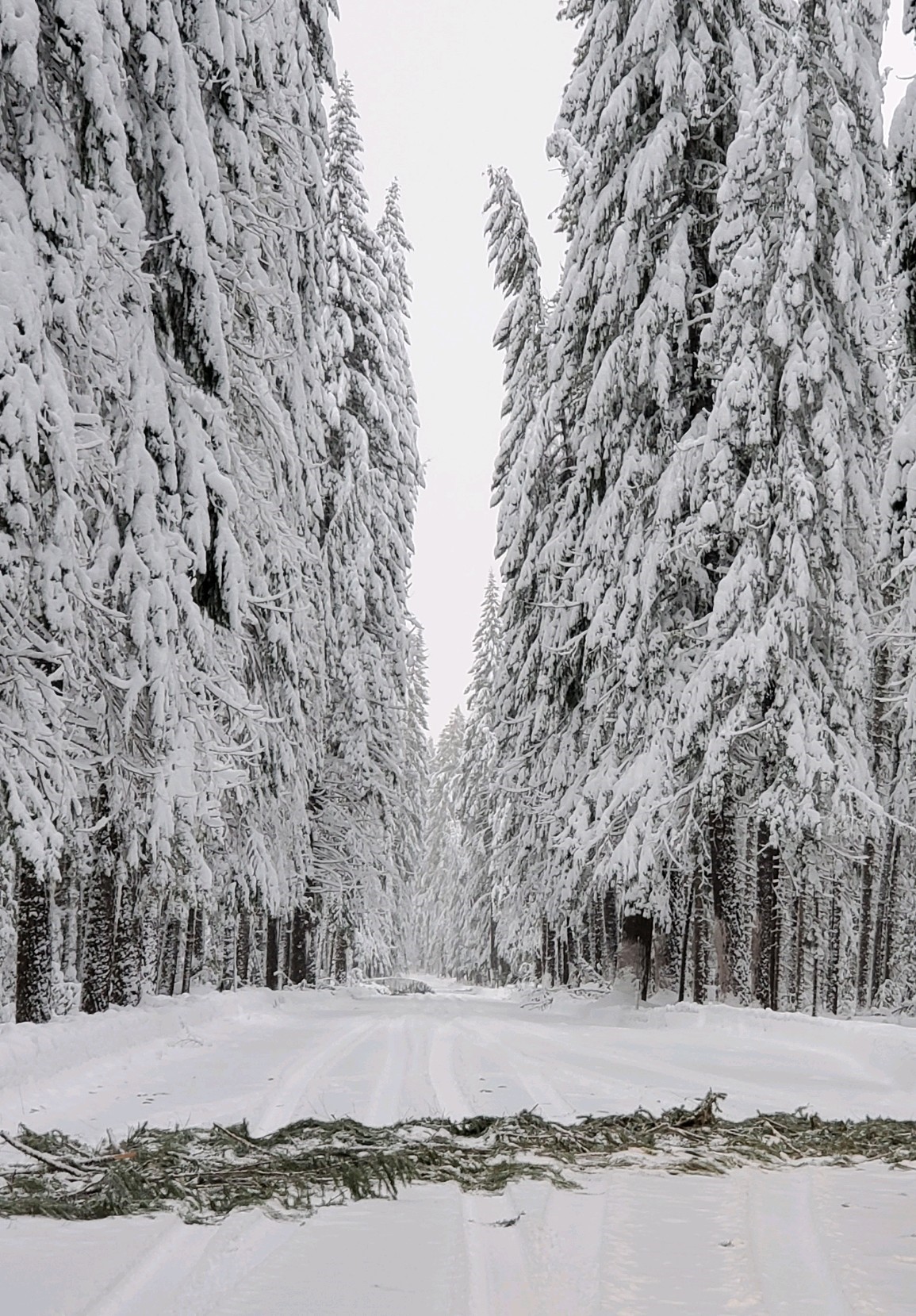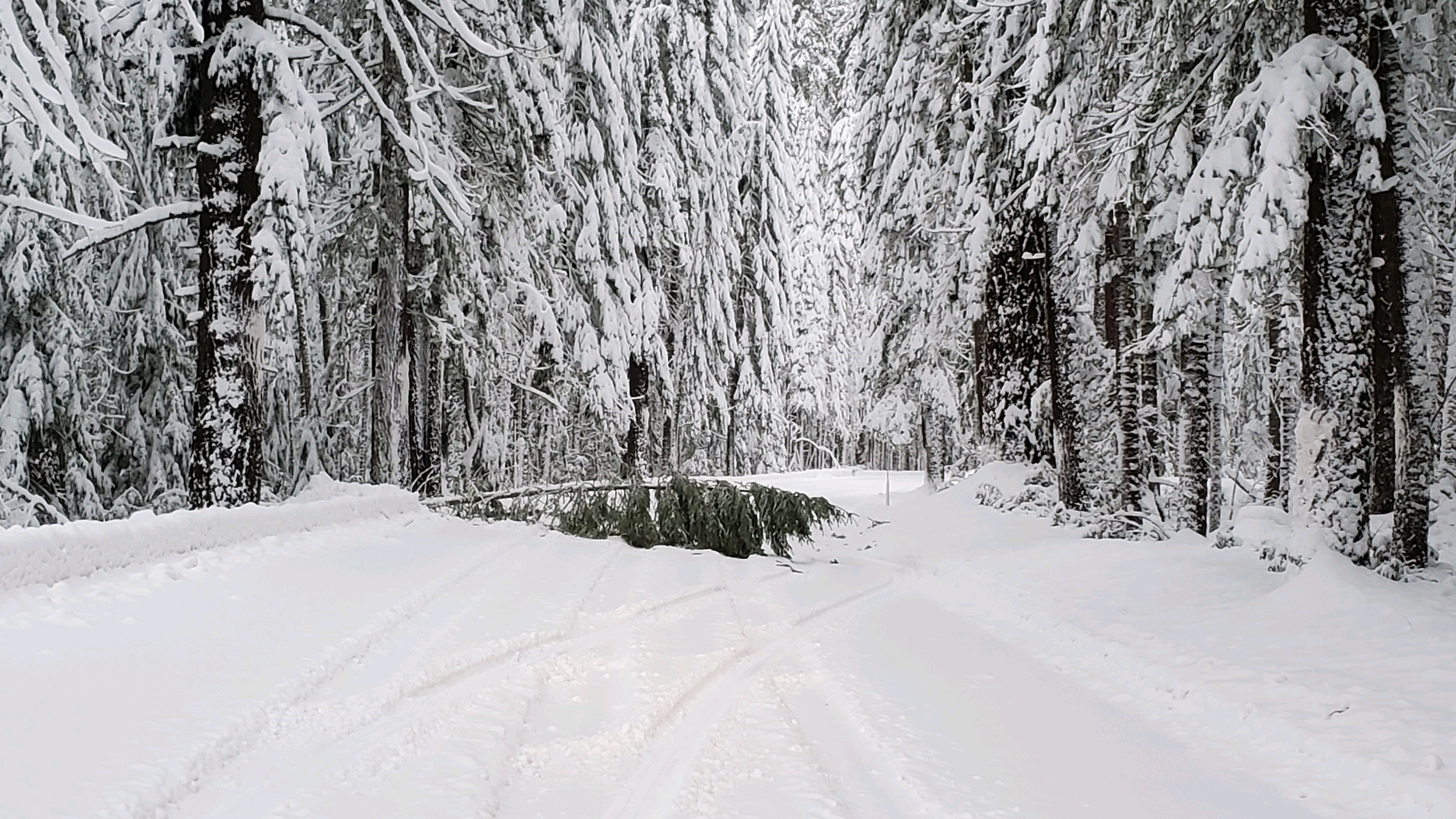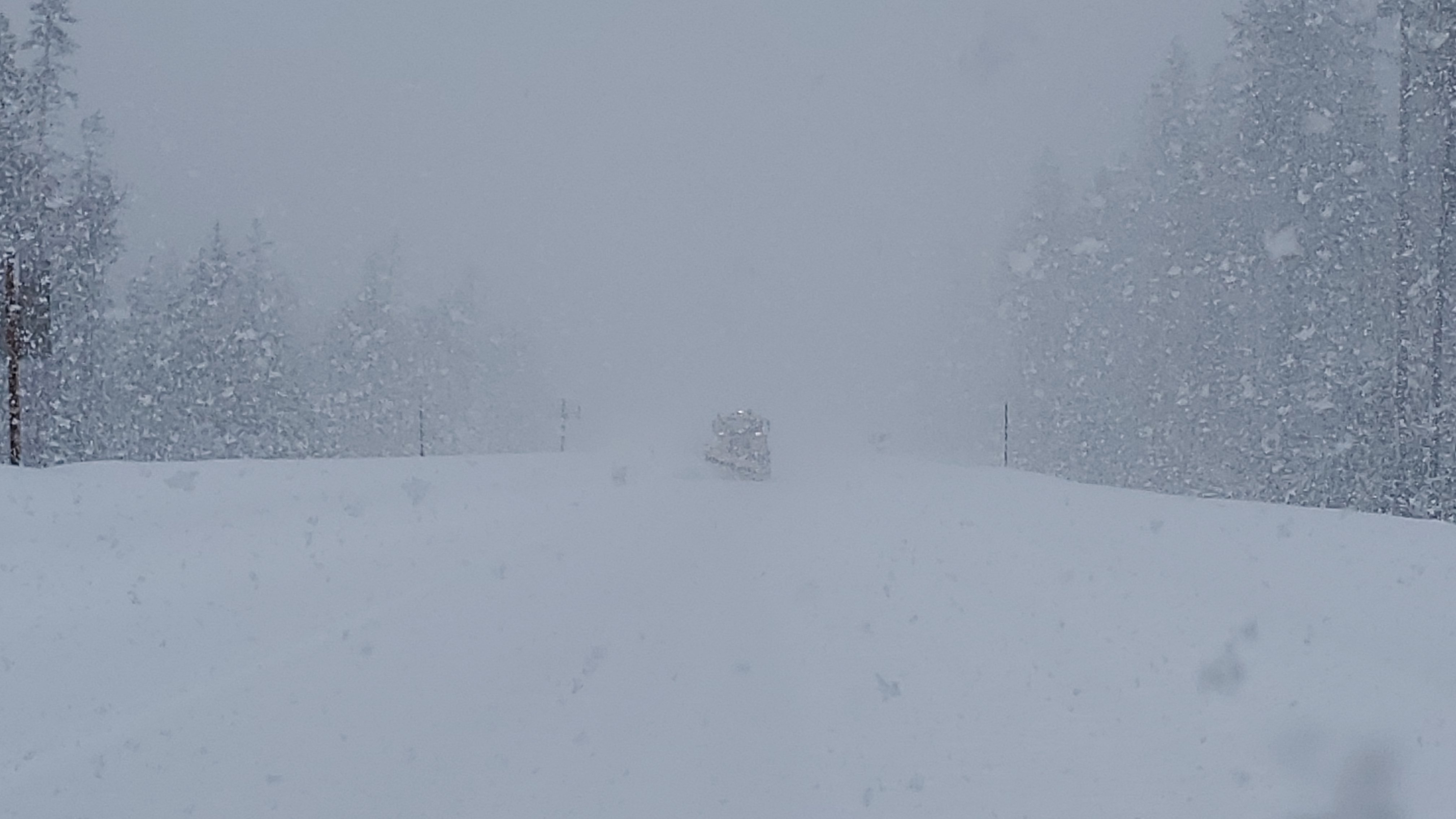 “We’ve seen winter trees fall in this area before so it’s not unusual,” said District Manager Jerry Marmon. “We’re starting the process to get the highway open but with reduced visibility and snowload, we may not be out there long. Safety for our crews and the public is the top priority.”