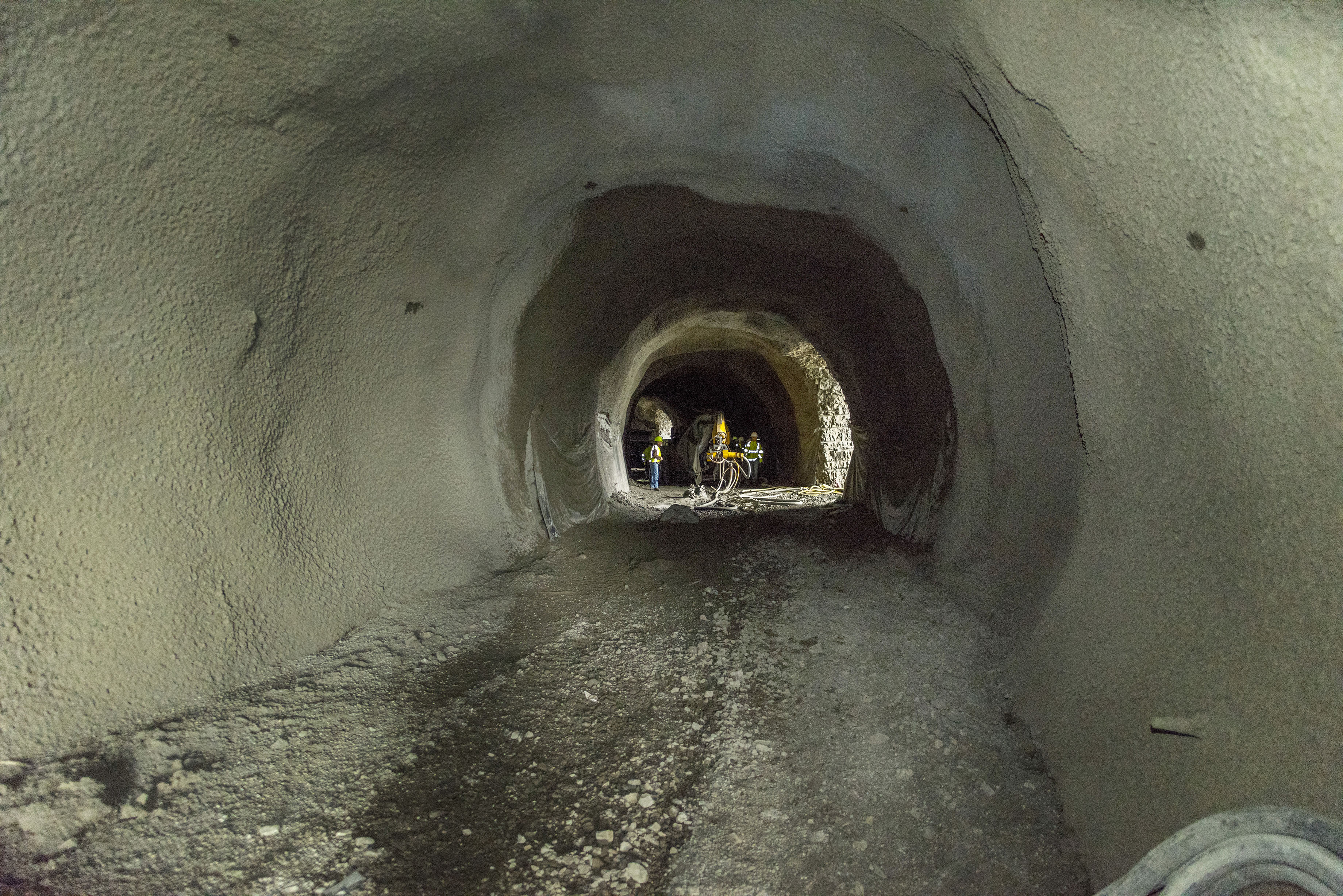Crews are lining the Mitchell Point Tunnel with structural shotcrete, which is concrete containing steel fibers and sprayed into place. Next, crews will add another coat of shotcrete tinted to mimic the color of the natural rock.