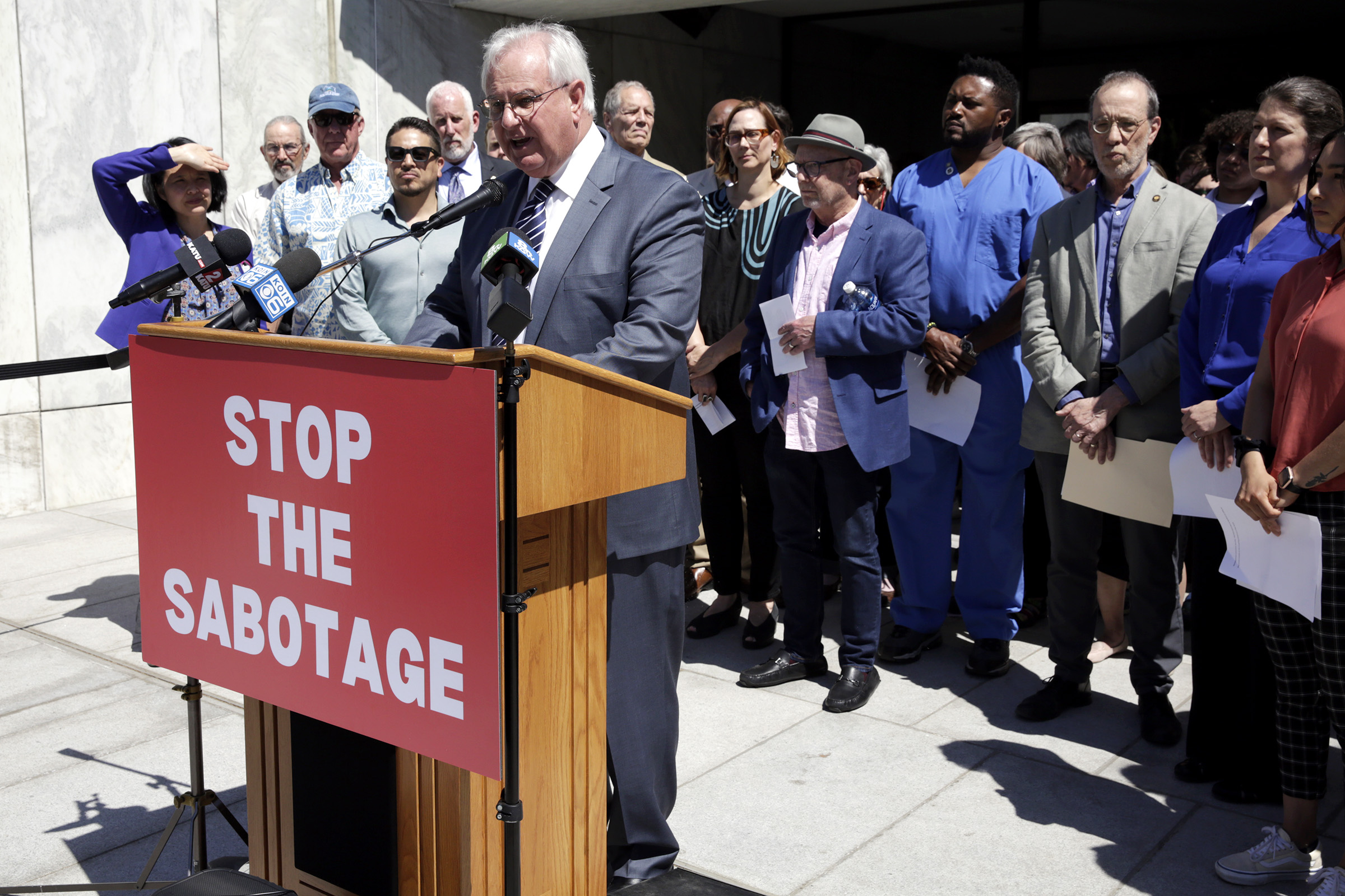 Legislators gather to demand that Republicans return to work. (Floyd is second person from the left.)